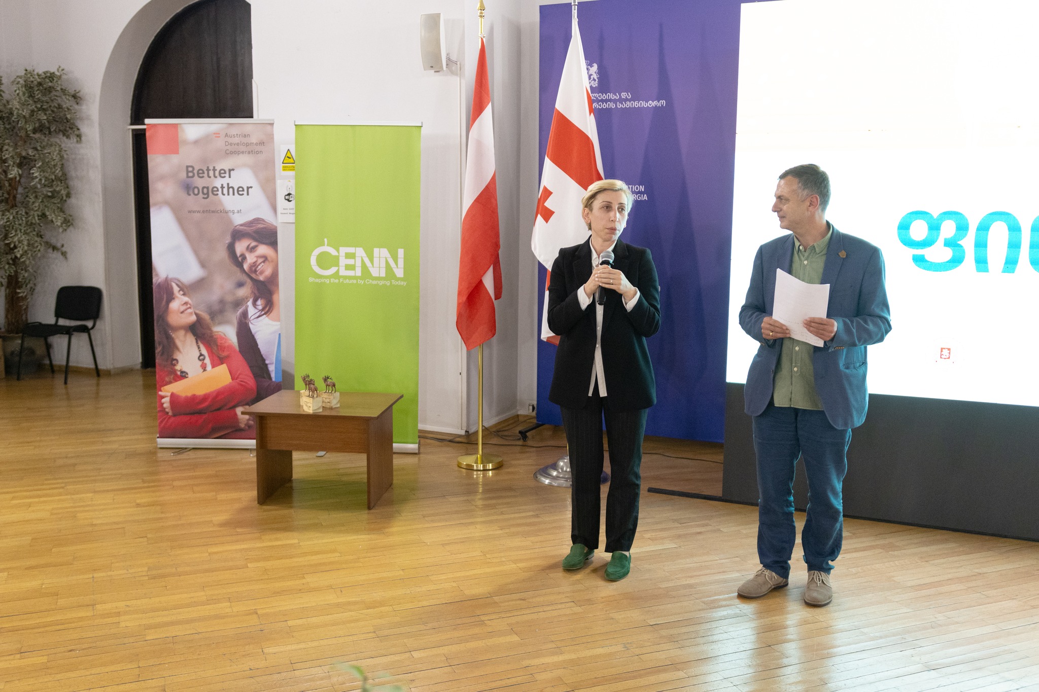 შეხვედრას საქართველოს განათლებისა და მეცნიერების მინისტრის პირველი მოადგილე თამარ მახარაშვილი, ავსტრიის რესპუბლიკის საგანგებო და სრულუფლებიანი ელჩი თომას მიულმანი, გაეროს მუდმივი კოორდინატორი საქართველოში საბინე მახლი და CENN-ის აღმასრულებელი დირექტორი ლოღან ჯორჯ ეტიენ ნიკოლი ესწრებოდნენ.