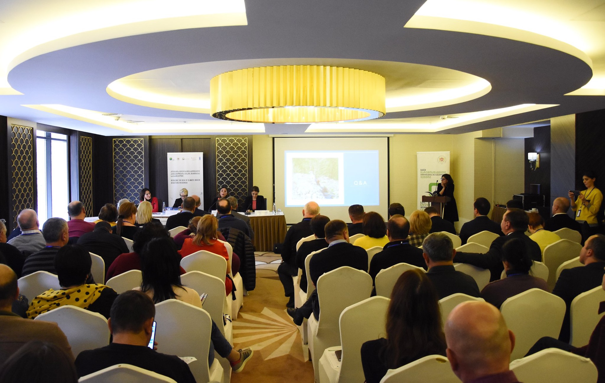 საინფორმაციო შეხვედრის მონაწილეებმა მიიღეს დეტალური ინფორმაცია პროექტის შესახებ. მათ ასევე ისაუბრეს საქართველოში არსებულ ჰიდრომეტეოროლოგიურ და გეოლოგიურ საფრთხეებზე და გაეცნენ ამ საფრთხეების შემცირებასთან დაკავშირებით დაგეგმილ ღონისძიებებს. შეხვედრის მონაწილეებმა აღნიშნეს, რომ ეროვნული შესაძლებლობების გაზრდა, საზოგადოების ცნობიერების ამაღლებასა და მოქალაქეთა აქტიურ ჩართულობას საკვანძო მნიშვნელობა ენიჭება კლიმატის ცვლილებასთან გამკლავების საქმეში. პროექტი “კლიმატის ცვლილებით გამოწვეული კატასტროფების რისკის შემცირება საქართველოში”, რომლის საერთო ბიუჯეტი 70 მილიონი აშშ დოლარია 7 წლის განმავლობაში განხორციელდება და მიზნად ისახავს კლიმატის ცვლილებით განპირობებული ბუნებრივი კატასტროფების რისკების შემცირებას, ადრეული შეტყობინების სისტემის განვითარებას და მრავალფაქტორიანი საფრთხეების მართვის ეფექტიანი ეროვნული სისტემის დანერგვას, რაც უზრუნველყოფს საქართველოში მცხოვრები 1.7 მილიონი ადამიანის წყალდიდობისგან, წყალმოვარდნისგან, გვალვისა და სხვა კლიმატური საფრთხეებისგან დაცვას.
