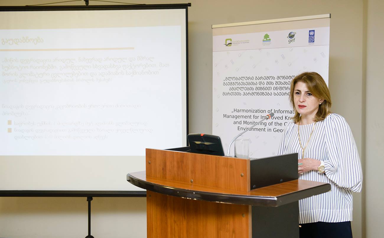 შეხვედრა გახსნა საქართველოს გარემოს დაცვისა და სოფლის მეურნეობის სამინისტროს სსიპ გარემოსდაცვითი ინფორმაციისა და განათლების ცენტრის დირექტორმა თამარ ალადაშვილმა.