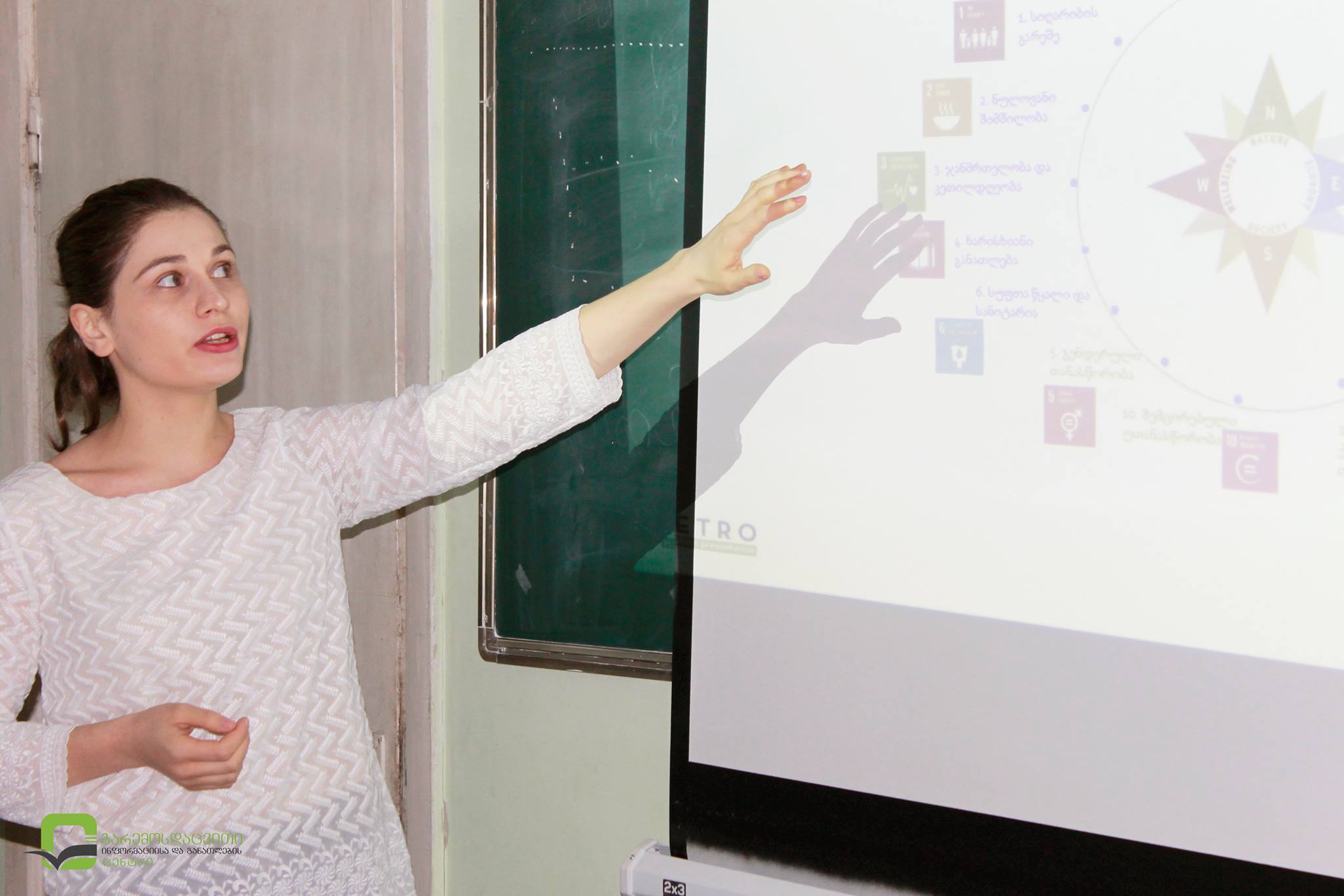 პროექტის ფარგლებში "მდგრადი განვითარება და გარემოს დაცვა" პირველი შეხვედრა 182-ე სკოლის მეათე კლასის მოსწავლეებთან გაიმართა. ლექციის მსვლელობისას მოსწავლეებმა ინფორმაცია მიიიღეს მდგრადი განვითარების კონცეფციის ჩამოყალიბების ისტორიაზე, მის მნიშვნელობასა და მდგრადი განვითარების მიზნებზე. განსაკუთრებული ყურადღება გამახვილდა  იმ გარემოსდაცვით პრობლემებზე, რომლებიც მდგრადი განვითარების სხვადასხვა მიზანს უკავშირდება, კერძოდ: ატმოსფერული ჰაერის ხარისხი, წყლის რესურსების დაცვა, ეკოსისტემებისა და ბიომრავალფეროვნების დაცვა და სხვა.. ლექციის დასასრულს, მოსწავლეებს სპეციალური კითხვარი " ჩემი ეკოლოგიური ნაკვალევი" დაურიგდათ, რომლის საშუალებითაც მათ გარემოზე საკუთარი ზეგავლენის გამოთვლა შეეძლებათ.