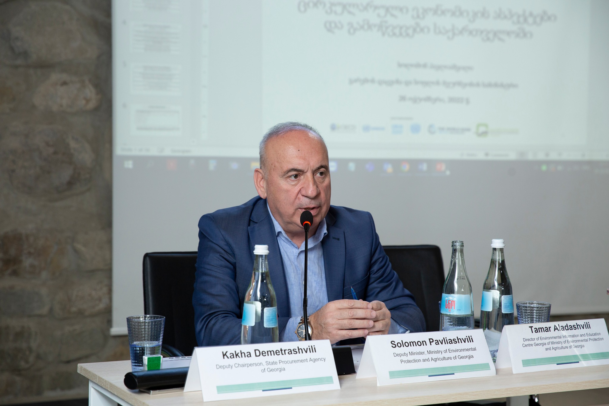 პრესტურს მედიის წარმომადგენლებთან ერთად, UNEP-ის პროგრამის ოფიცერი ფარიდ იაკერი, EU4Environment პროექტის ექსპერტი ლესია ნიკოლაევა, სახელმწიფო შესყიდვების სააგენტოს თავმდჯომარის მოადგილე კახა დემეტრაშვილი, გარემოსდაცვითი ინფორმაციისა და განათლების ცენტრის დირექტორი თამარ ალადაშვილი და საქართველოს მცირე და საშუალო საწარმოების წარმომადგენლები ესწრებოდნენ.