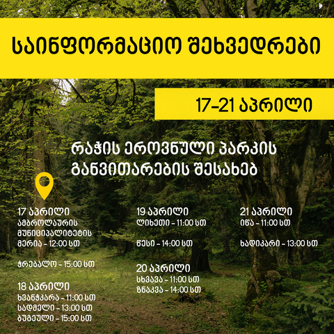 საინფორმაციო შეხვედრები დაგეგმილია გარემოს დაცვისა და სოფლის მეურნეობის სამინისტროსა და დაცული ტერიტორიების სააგენტოს ინიციატივით, ამბროლაურის მუნიციპალიტეტის მერიასთან თანამშრომლობით.