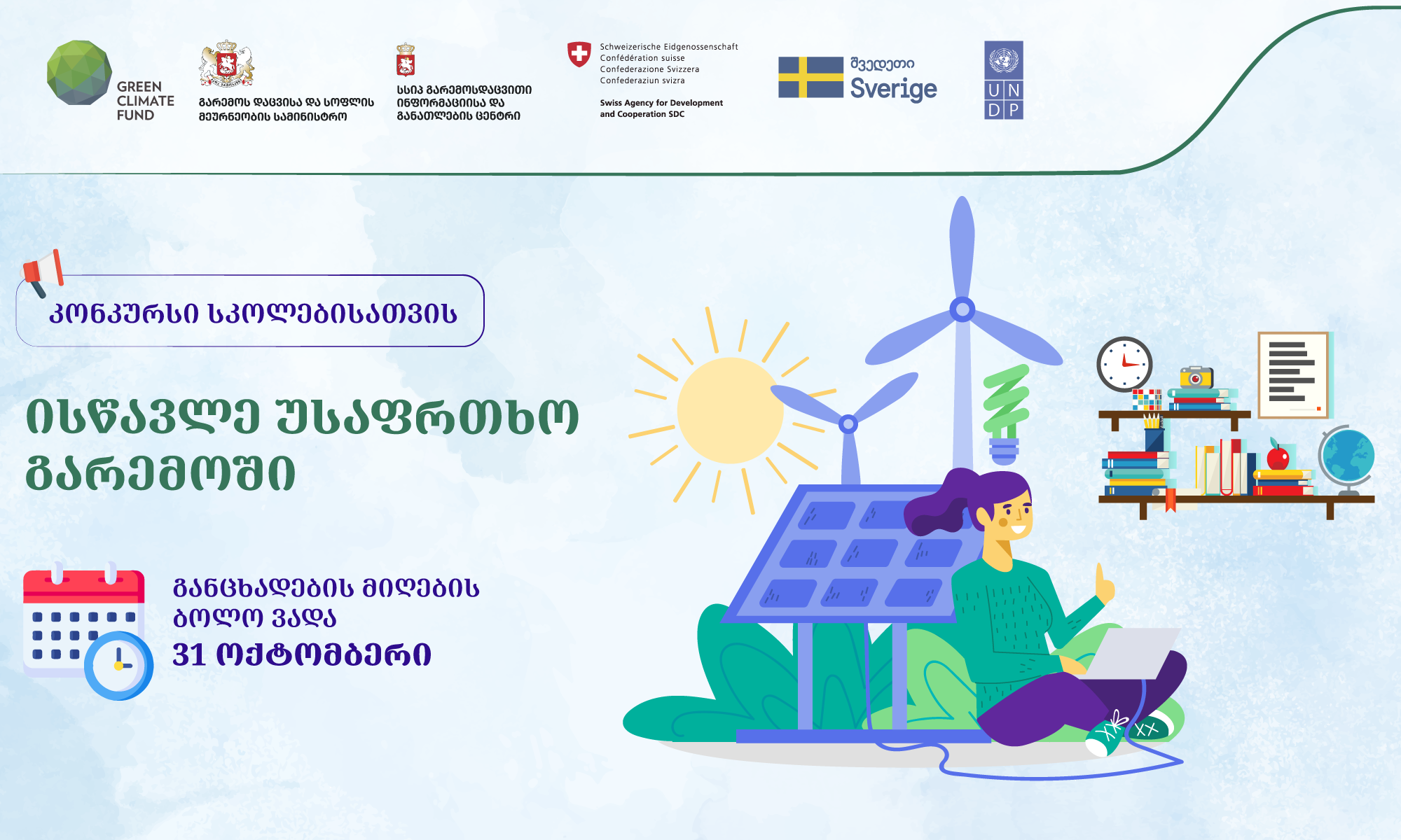 გარემოსდაცვითი ინფორმაციისა და განათლების ცენტრი ზოგადსაგანმანათლებლო დაწესებულებებისთვის აცხადებს საგრანტო კონკურსს - ,,ისწავლე უსაფრთხო გარემოში”.