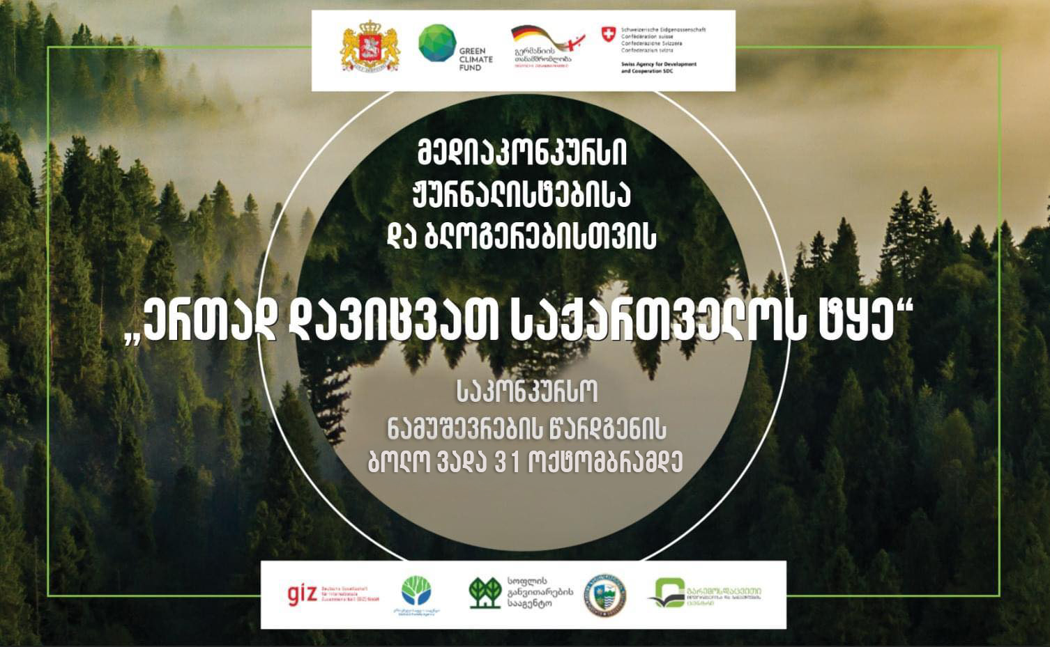 გარემოსდაცვითი ინფორმაციისა და განათლების ცენტრი აცხადებს მედიაკონკურსს ჟურნალისტებისა და ბლოგერებისთვის „ერთად დავიცვათ საქართველოს ტყე“.