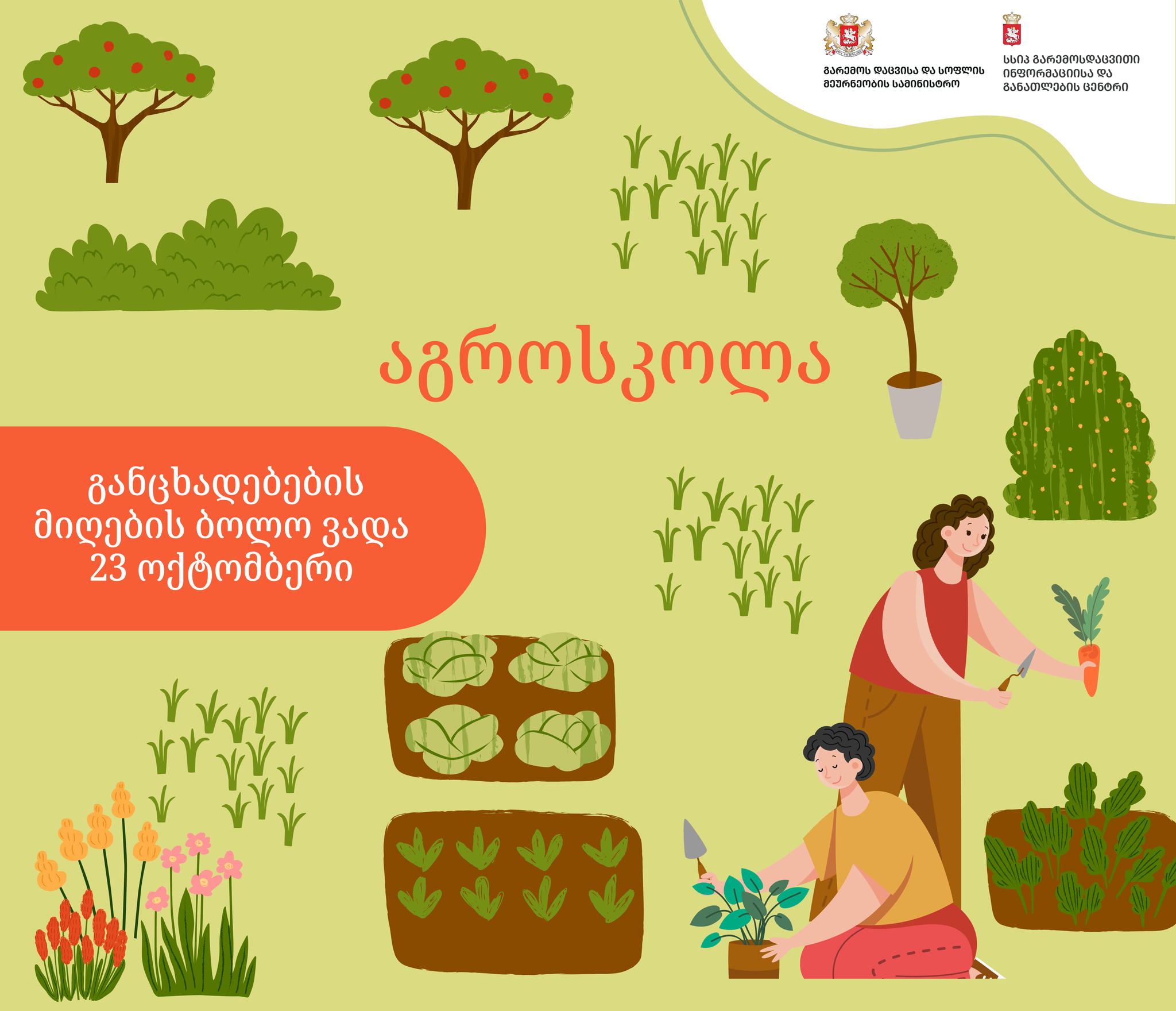 აგროსკოლაში სწავლა დაიწყება 14 ნოემბერს. შეხვედრები გაიმართება ონლაინ ყოველ სამშაბათსა და პარასკევს, 16:00-დან 18:00 საათამდე.