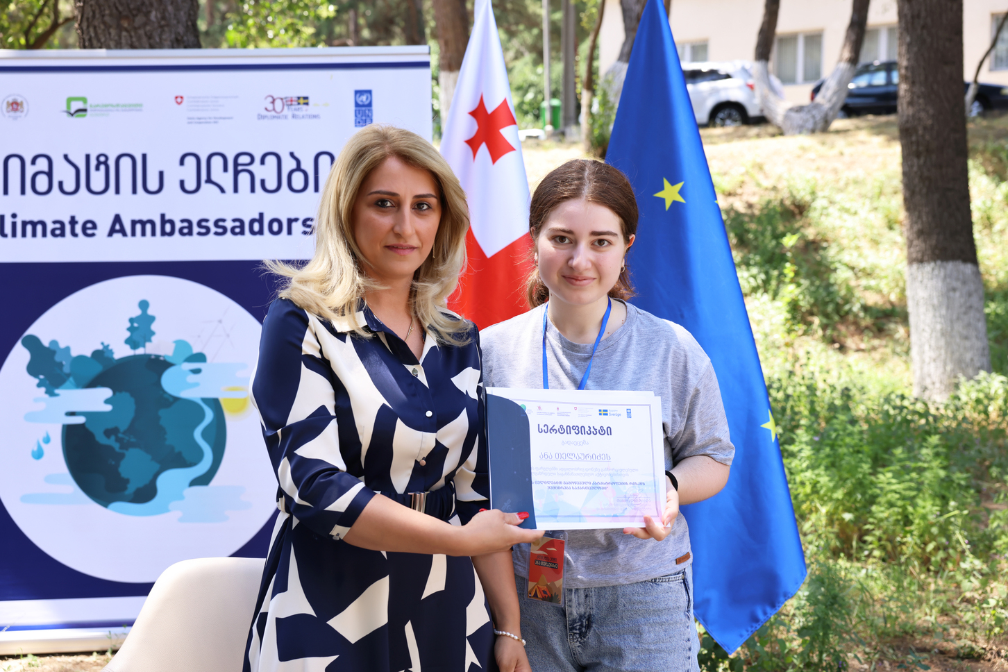 მწვანე ბანაკი „კლიმატის ელჩები” ხორციელდება გარემოსდაცვითი ინფორმაციისა და განათლების ცენტრის მიერ პროგრამის „კლიმატის ცვლილებით გამოწვეული კატასტროფების რისკის შემცირება საქართველოში”, რომელიც დაფინანსებულია საქართველოს მთავრობის, კლიმატის მწვანე ფონდის (GCF), შვედეთის და შვეიცარიის მთავრობების მიერ. პროგრამის განხორციელებას გაეროს განვითარების პროგრამა (UNDP) უზრუნველყოფს.