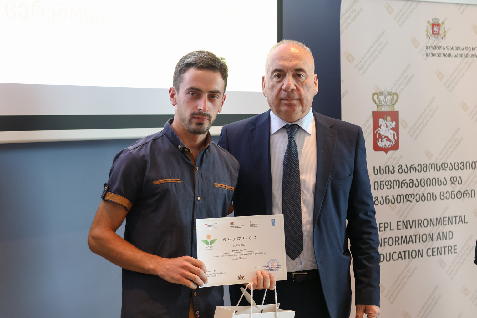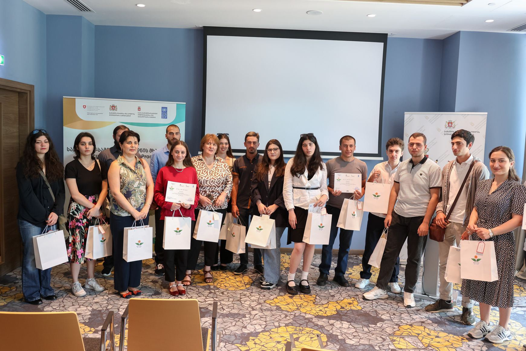 გამარჯვებულებს სასაჩუქრე ვაუჩერები და სერტიფიკატები საქართველოს გარემოს დაცვის და სოფლის მეურნეობის მინისტრის მოადგილე სოლომონ პავლიაშვილმა, შვეიცარიის განვითარების და თანამშრომლობის  სააგენტოს (SDC) ეროვნული პროგრამის ოფიცერმა ლელა მამრიკიშვილმა და გაეროს განვითარების პროგრამის (UNDP) ეკონომიკური განვითარების მიმართულების ხელმძღვანელმა გიორგი ნანობაშვილმა გადასცეს.