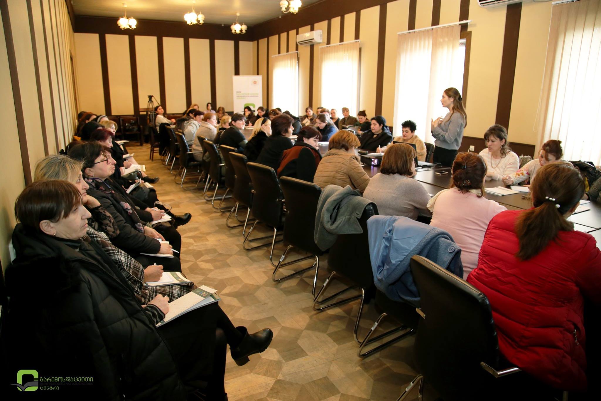 ტრენინგის მონაწილეებს გარემოსდაცვითი ინფორმაციისა და განათლების ცენტრის დირექტორის მოადგილემ ეკატერინე ბენდელიანმა მიმართა და მონაწილეებს გარემოსდაცვითი განათლებისა და მასში სკოლამდელი საფეხურის აქტიური ჩართულობის მნიშვნელობაზე ესაუბრა.