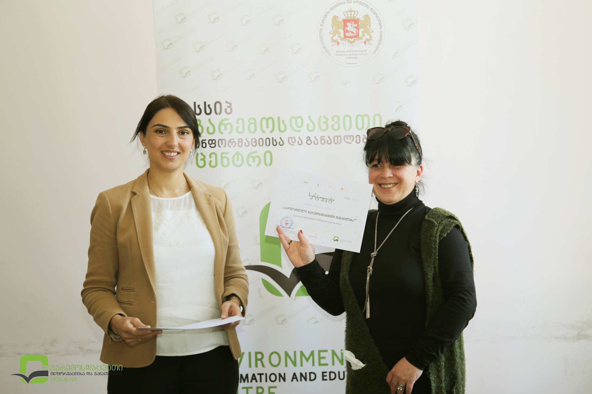 შეხვედრის მონაწილეებს გარემოსდაცვითი ინფორმაციისა და განათლების ცენტრის დირექტორმა თამარ ალადაშვილმა მიმართა დაყურადღება გაამახვილა გარემოსდაცვითი პრობლემების აღმოფხვრაში სკოლამდელი განათლების როლზე.