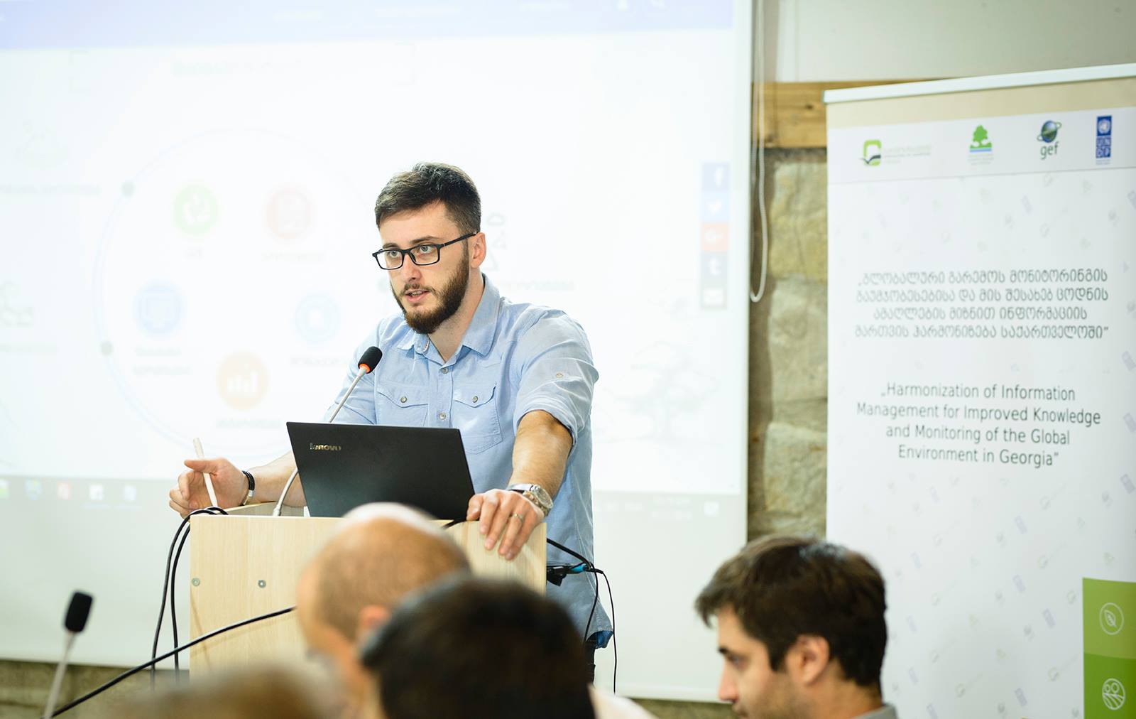 სისტემის სადემონტრაციო სესიას ესწრებოდა გაეროს განვითარების პროგრამის პროექტის- „გლობალური გარემოს მონიტორინგის გაუმჯობესებისა და მის შესახებ ცოდნის ამაღლების მიზნით ინფორმაციის მართვის ჰარმონიზება საქართველოში“ მენეჯერი ნინო გვაზავა, ექსპერტები და დარგის სპეციალისტები.