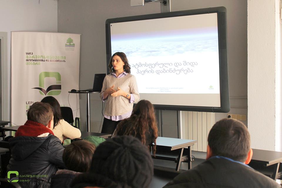 “ჰაერის დაბინძურების” კამპანიის ფარგლებში გარემოსდაცვითი ინფორმაციისა და განათლების ცენტრს 59-ე საჯარო სკოლის მოსწავლეები ესტუმრნენ. მოსწავლეებმა ლექცია ჰაერის, მისი მნიშვნელობის, ძირითადი დამაბინძურებლებისა და დაბინძურებასთან ბრძოლის შესახებ მოისმინეს. ასევე მიიღეს ინფორმაცია შიდა ჰაერის დამაბინძურებლებსა და მათთან ბრძოლის შესაძლო გზებზე. ლექციის მსვლელობისას განსაკუთრებული ყურადღება სატრანსპორტო დაბინძურებას დაეთმო. პრობლემის გასააზრებლად მოსწავლეებმა DPSIR მეთოდიც გამოიყენეს და პრობლემის გადაჭრის გზებზეც იმსჯელეს.