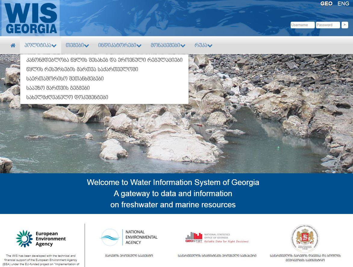 წყლის საინფორმაციო სისტემა ევროკავშირის პროექტის „ერთიანი გარემოსდაცვითი საინფორმაციო სისტემის პრინციპებისა და პრაქტიკის განხორციელება აღმოსავლეთ პარტნიორობის ქვეყნებში (ENI SEIS II East)” ფარგლებში, ევროპის გარემოს დაცვის სააგენტოს ტექნიკური და ფინანსური მხარდაჭერით იქმნება.