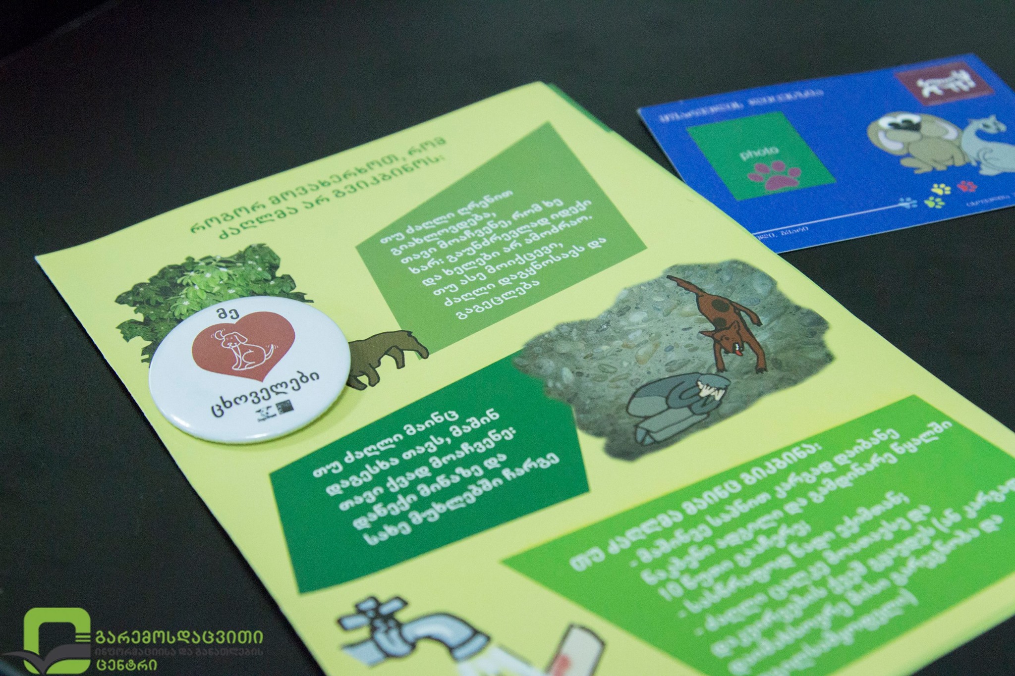 გარემოსდაცვითი ინფორმაციისა და განათლების ცენტრში ბავშვებისა და ძაღლების ჰარმონიული თანაცხოვრების შესახებ საინფორმაციო შეხვედრა გაიმართა. ლექციას ცხოველთა უფლებების კომიტეტის წარმომადგენელი, თინათინ ჭავჭანიძე უძღვებოდა. შეხვედრაზე ბავშვებმა ძაღლების მიმართ ჰუმანურად მოქცევის წესების, მათ მიმართ შიშის დაძლევის ხერხების, ძაღლების უფლებებისა და ამ მხრივ საქართველოში არსებული მდგომარეობის შესახებ მიიღეს ინფორმაცია. მოსწავლეებმა როლური თამაშებიც ითამაშეს და მიღებული ინფორმაცია უკეთ გაითავისეს. ლექციის დასასრულს ბავშვებს საჩუქრად ძაღლების მოვლისა და მათთან სწორი მოქცევის წესების შესახებ საინფორმაციო ბუკლეტები გადაეცათ. შეხვედრა პროექტის „ბავშვებისა და ძაღლების ჰარმონიული თანაცხოვრების ხელშეწყობა საქართველოში“ ფარგლებში ჩატარდა.