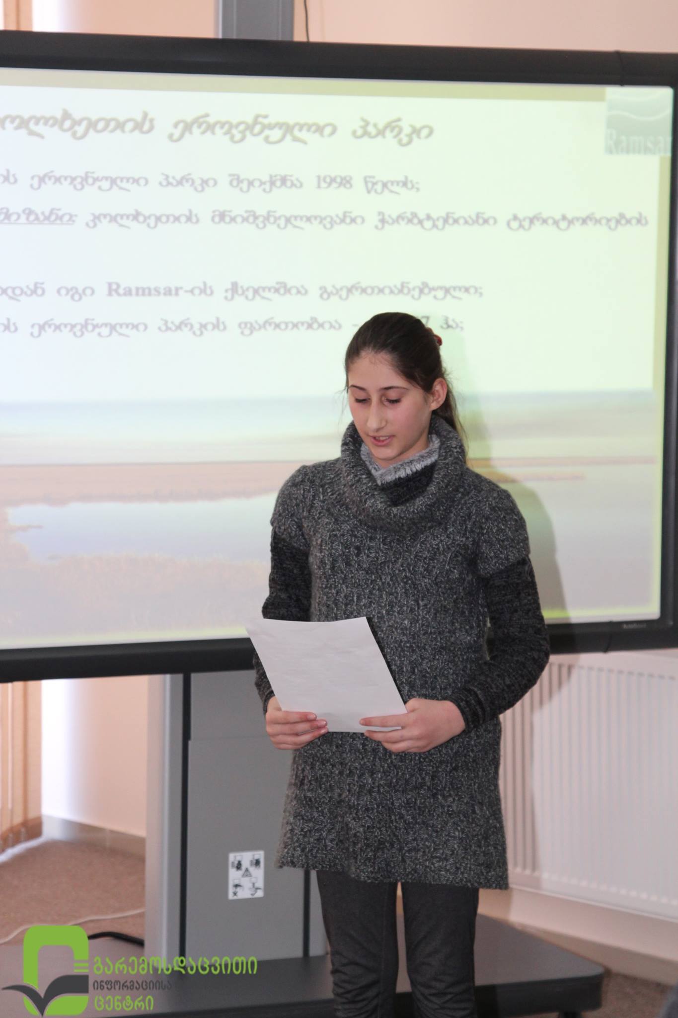 გარემოსდაცვითი ინფორმაციისა და განათლების ცენტრში ჭარბტენიანი ტერიტორიების საერთაშორისო დღის აღსანიშნავად მოსწავლე-ახალგაზრდობის ეროვნული სასახლის მოსწავლეებთან საინფორმაციო შეხვედრა-სემინარი გაიმართა. ღონისძიებაზე მოსწავლეებმა თავიანთი ნამუშევრები წარადგინეს და ჭარბტენიანი ტერიტორიების მნიშვნელობაზე ისაუბრეს. გარდა ამისა, წარმოდგენილი იყო მათ მიერ შექმნილი ნახატები.