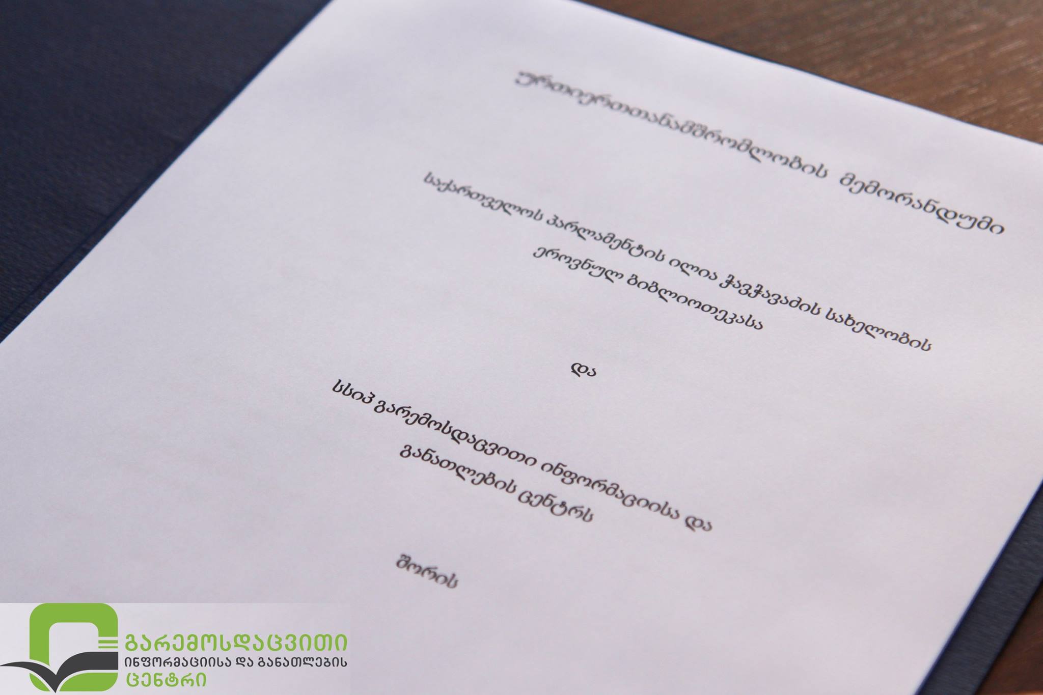 გარემოსდაცვითი ინფორმაციისა და განათლების ცენტრსა და საქართველოს პარლამენტის ეროვნულ ბიბლიოთეკას შორის მემორანდუმი გაფორმდა.