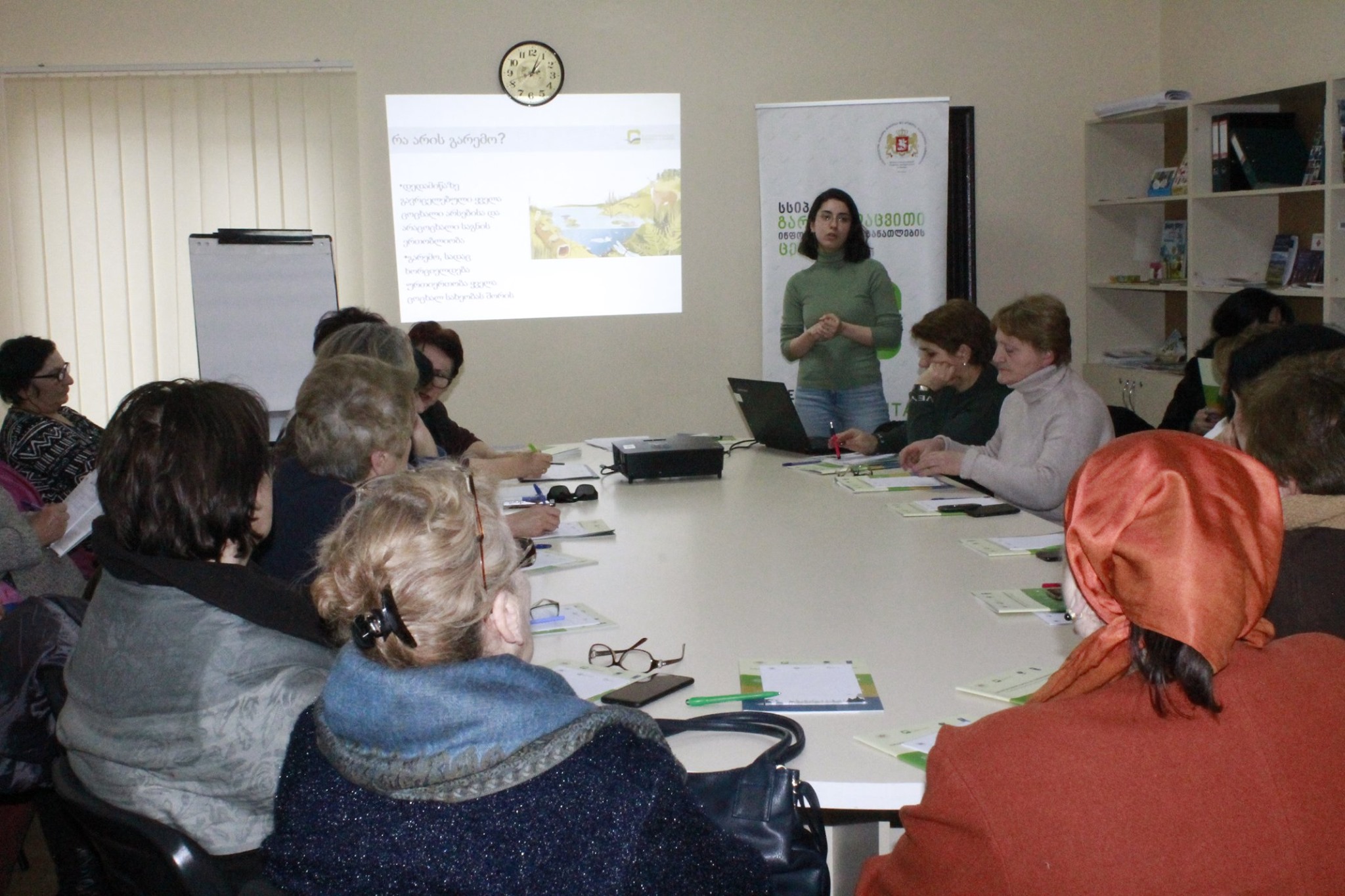 გარემოსდაცვითი ინფორმაციისა და განათლების ცენტრის წარმომადგენლებმა ტრენინგების ფარგლებში ძირითადი ყურადღება ახმეტის მუნიციპალიტეტში მიწის დეგრადაციის პრობლემასა და მინდვრის გადაწვის მავნე პრაქტიკაზე გაამახვილეს. აგრარული სფეროს გამოწვევებთან ერთად, ყურადღება დაეთმო ისეთ გარემოსდაცვით საკითხებს, როგორიცაა ატმოსფერული ჰაერის ხარისხი სოფლად და მისი დაბინძურების გამომწვევი მთავარი მიზეზი-ფოთლების დაწვის მავნე პრაქტიკა, ბიომრავალფეროვნების კარგვა და კლიმატის ცვლილება. თეორიულ ნაწილთან ერთად, ტრენინგები პრაქტიკულ სავარჯიშოებსაც მოიცავდა და მასწავლებლები და აღმზრდელ-მეთოდისტები აქტიურად ჩაერთვნენ გამართულ დისკუსიებში. მონაწილეებს გადაეცათ საინფორმაციო ბროშურები და სხვა სასწავლო მასალები, რომელთა გამოყენებასაც სწავლებისას შეძლებენ.