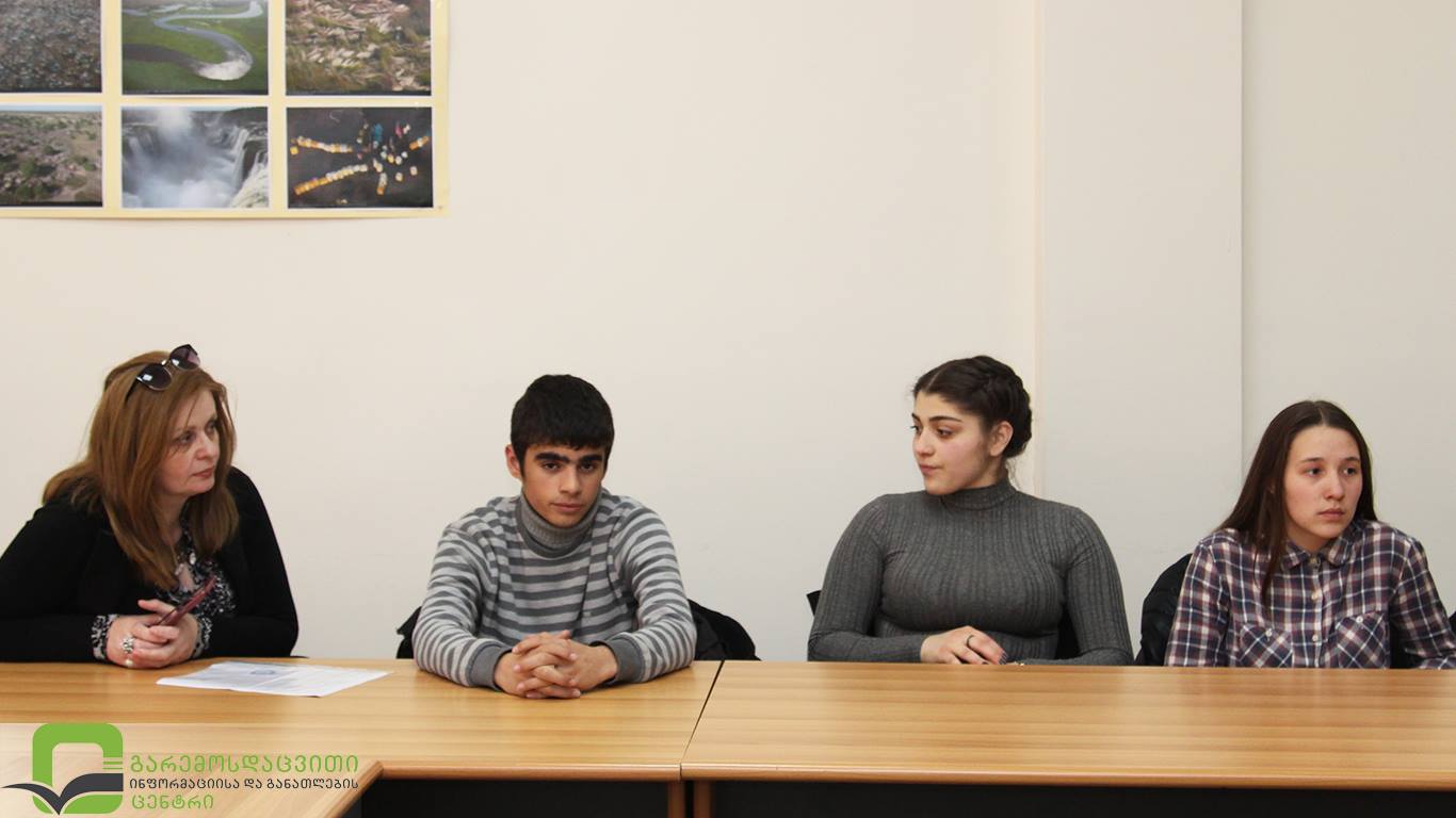 გარემოსდაცვითი ინფორმაციისა და განათლების ცენტრი აგრძელებს შეხვედრებს სკოლის მოსწავლეებთან. ჩვენს ცენტრს თეთრიწყაროსა და ბოლნისის სკოლის 20 მოსწავლე ესტუმრა. „მომავლის თაობის“ პროგრამის წარმომადგენლებს შეხვედრა ბიომრავალფეროვნებისა და დაცული ტერიტორიების შესახებ ჩვენი ცენტრის განათლების პროექტების სამსახურის უფროსმა ნატა სულთანიშვილმა ჩაუტარა.