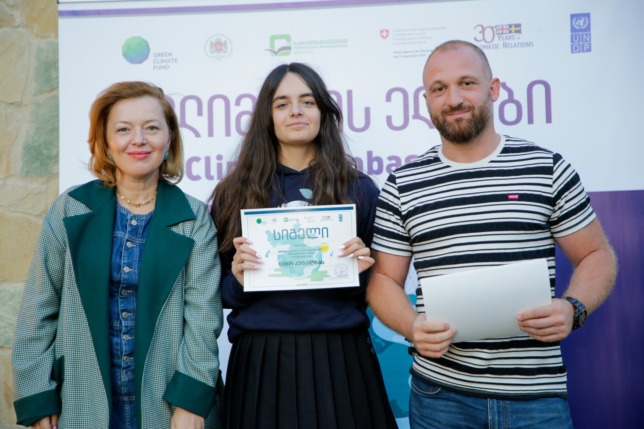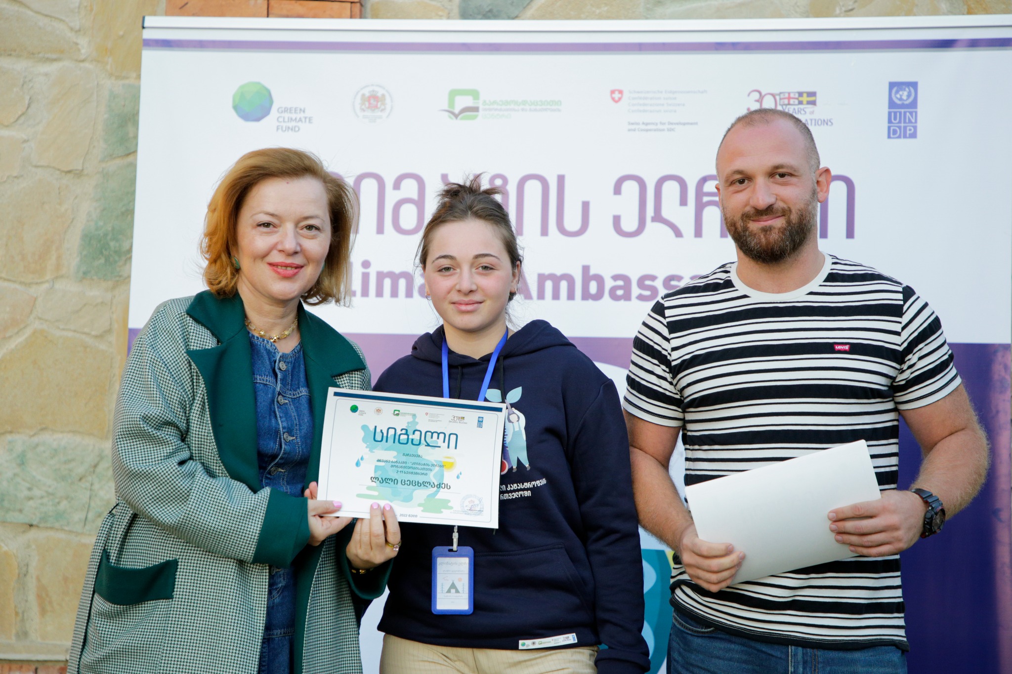 გარემოსდაცვითი ინფორმაციისა და განათლების ცენტრის დირექტორის მოადგილემ, ეკატერინე ბენდელიანმა ბანაკის მონაწილეებს სერტიფიკატები გადასცა.