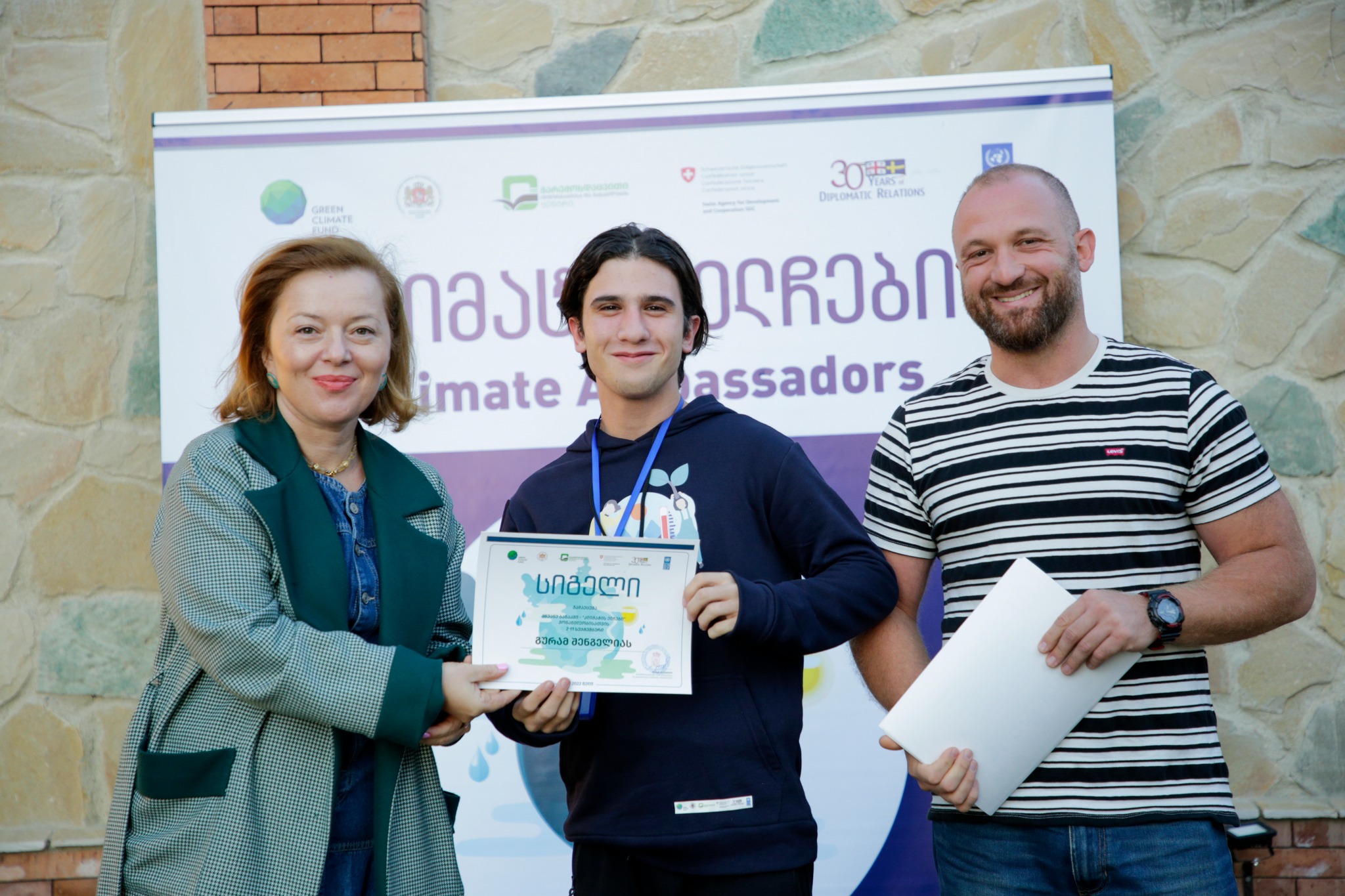 მწვანე ბანაკი ,,კლიმატის ელჩები" გარემოს დაცვისა და სოფლის მეურნეობის სამინისტროს გარემოსდაცვითი ინფორმაციისა და განათლების ცენტრის მიერ გაეროს განვითარების პროგრამის (UNDP) ფართომასშტაბიანი ინიციატივის ,,კლიმატის ცვლილებით გამოწვეული კატასტროფების რისკის შემცირება საქართველოში" ფარგლებში ჩატარდა, რომელიც საქართველოს მოსახლეობის კლიმატის ცვლილებით გამოწვეული კატასტროფებისგან დაცვას ემსახურება და კლიმატის მწვანე ფონდის (GCF), საქართველოს, შვედეთისა და შვეიცარიის მთავრობების მხარდაჭერით ხორციელდება.