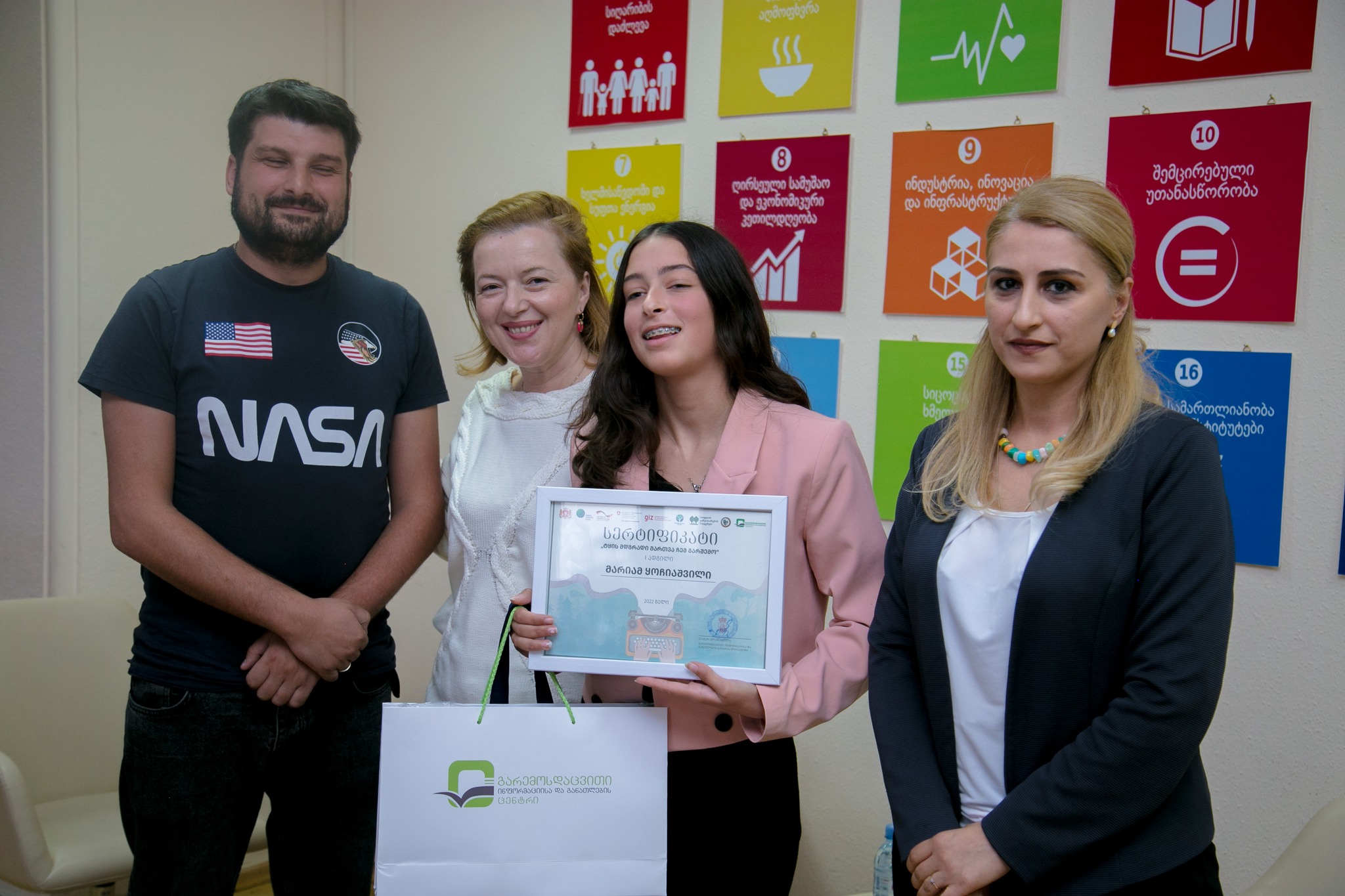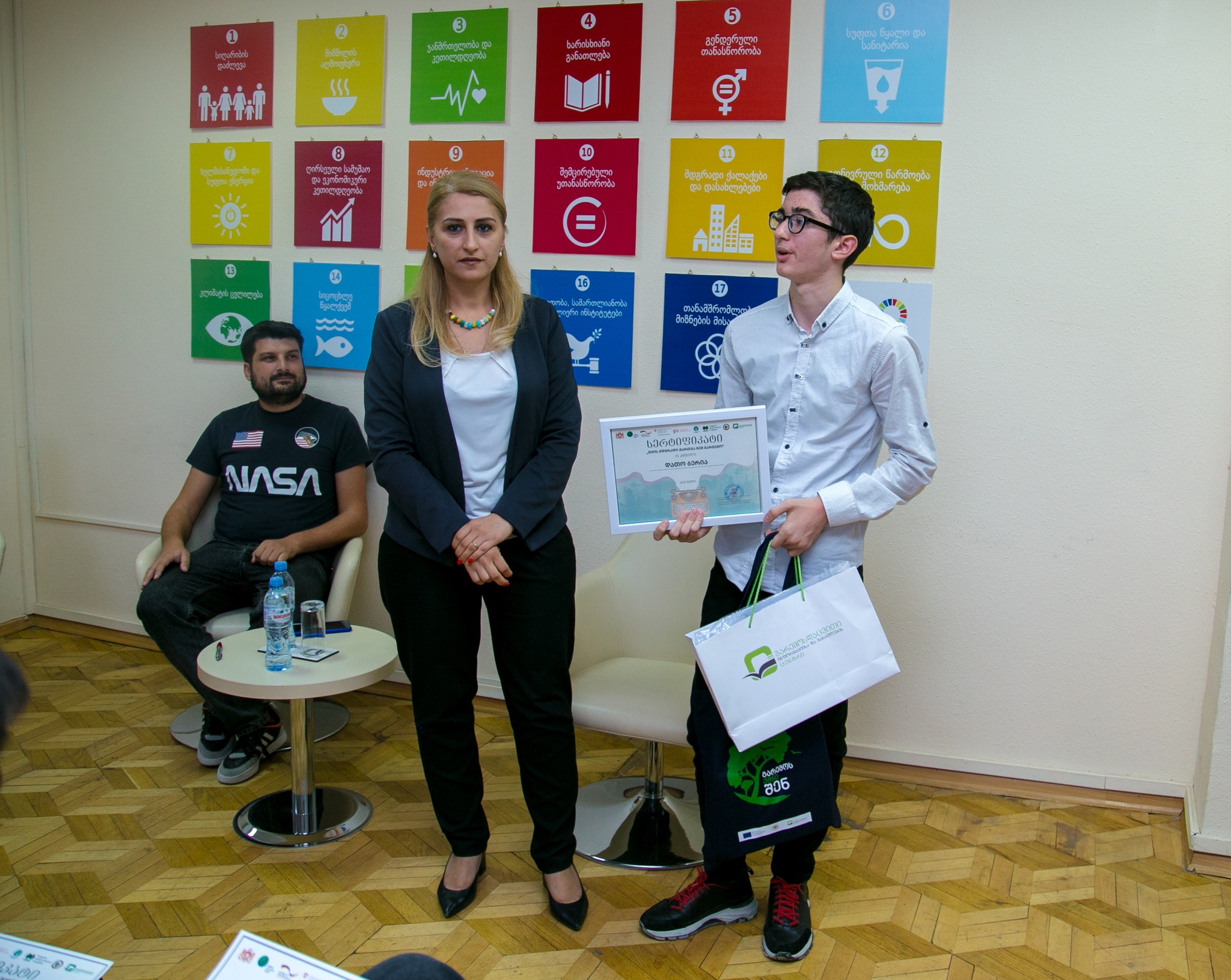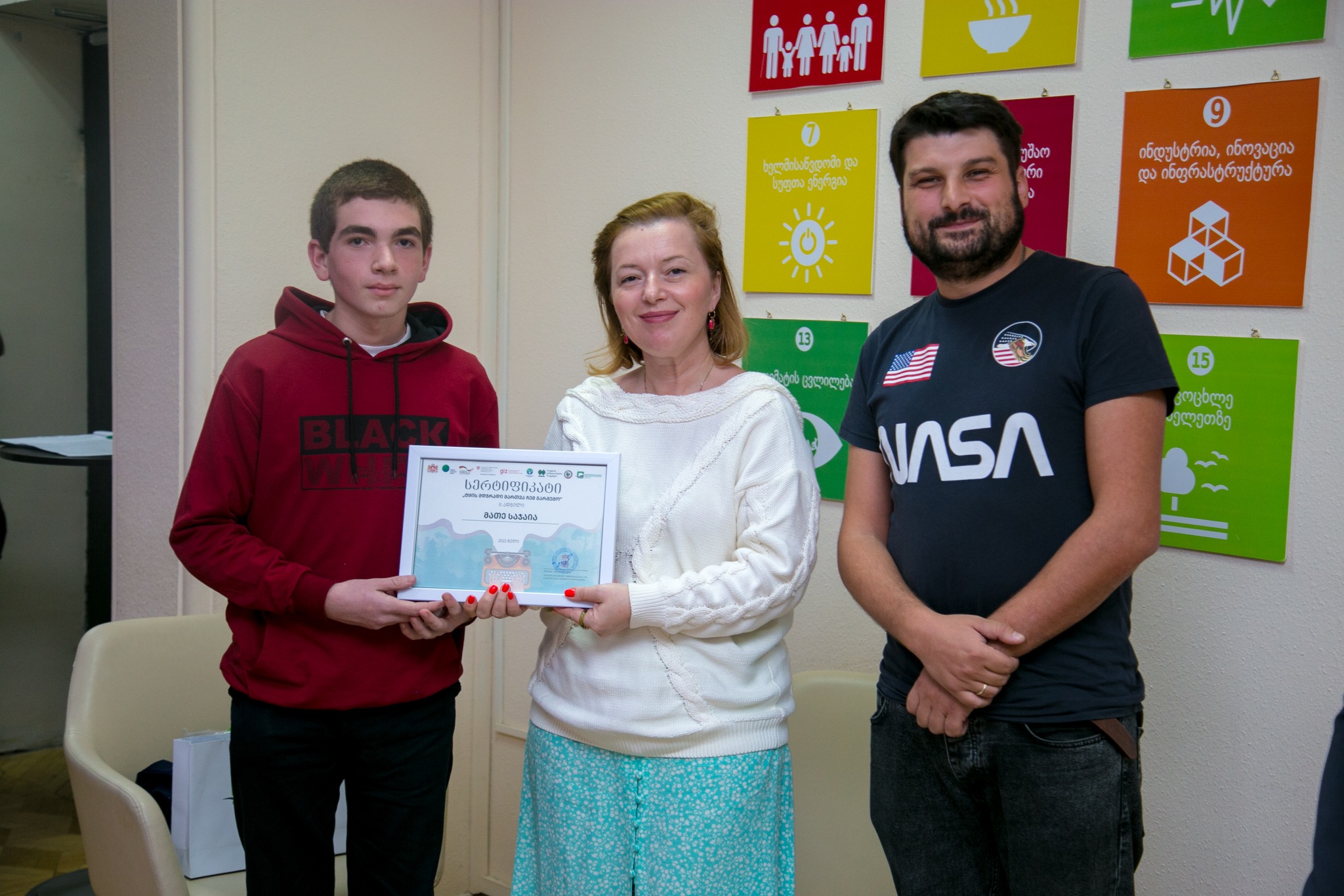 გარემოს დაცვისა და სოფლის მეურნეობის სამინისტროს გარემოსდაცვითი ინფორმაციისა და განათლების ცენტრის დირექტორმა, თამარ ალადაშვილმა ესსეების კონკურსის „ტყის მდგრადი მართვა ჩემ გარშემო“ გამარჯვებულები დააჯილდოვა.