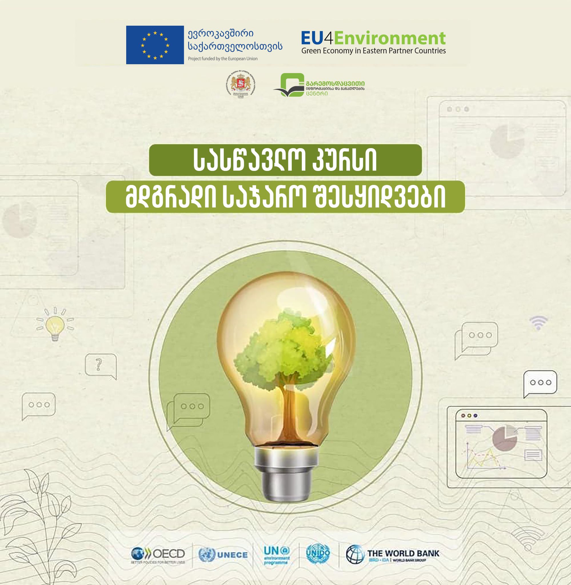 სასწავლო კურსი ტარდება ევროკავშირის მიერ დაფინანსებული EU4Environment პროგრამის ფარგლებში, საქართველოს გარემოს დაცვისა და სოფლის მეურნეობის სამინისტროს გარემოსდაცვითი ინფორმაციისა და განათლების ცენტრის, სახელმწიფო შესყიდვების სააგენტოსა და გაეროს გარემოსდაცვითი პროგრამის (UNEP) მჭიდრო თანამშრომლობით.