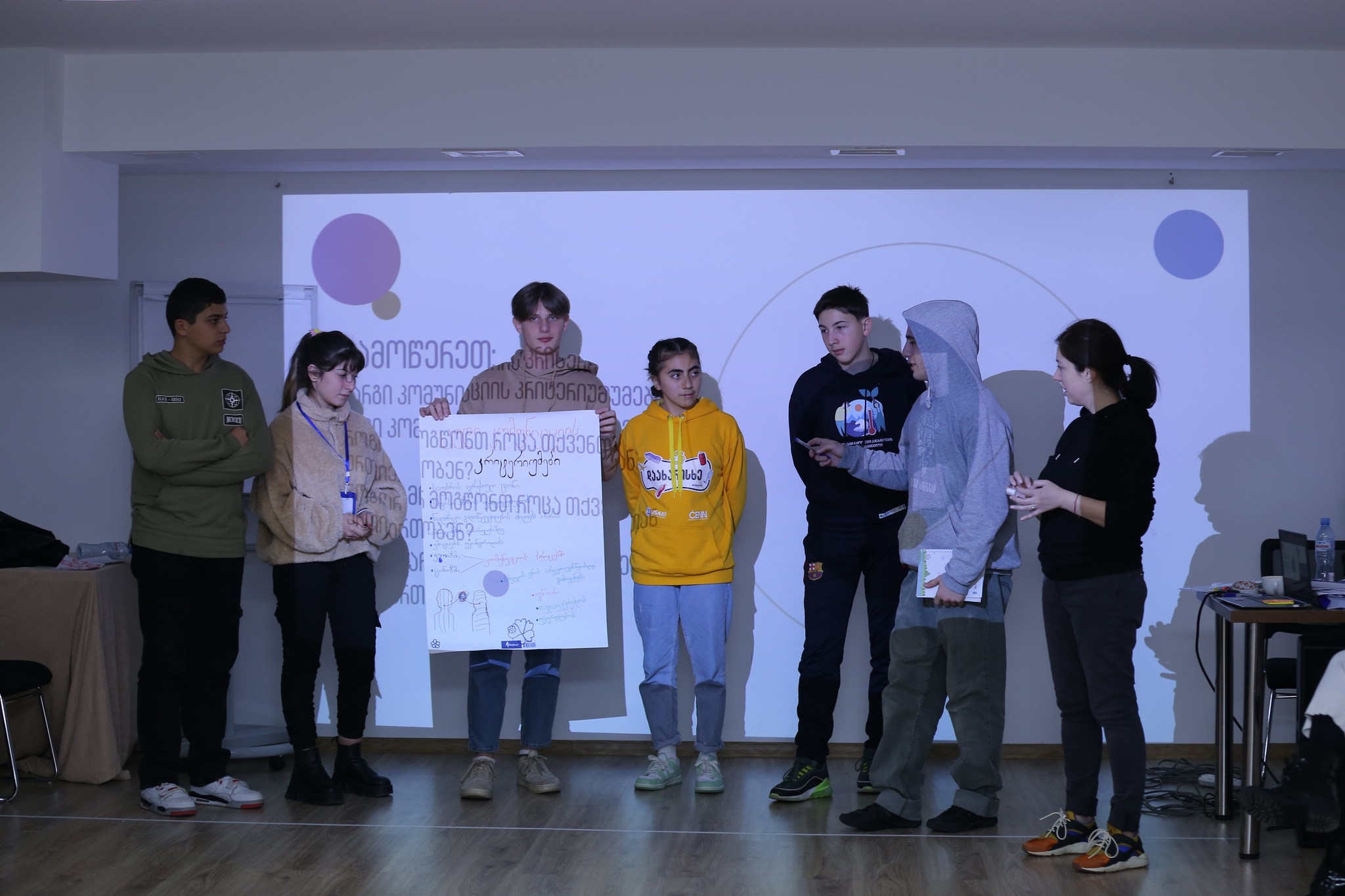 მოხალისეებმა „კლიმატის ცვლილებით გამოწვეული კატასტროფების რისკის შემცირება საქართველოში" პროექტის ფარგლებში საკუთარ რეგიონში განხორციელებული აქტივობების შესახებ პრეზენტაციები წარადგინეს.