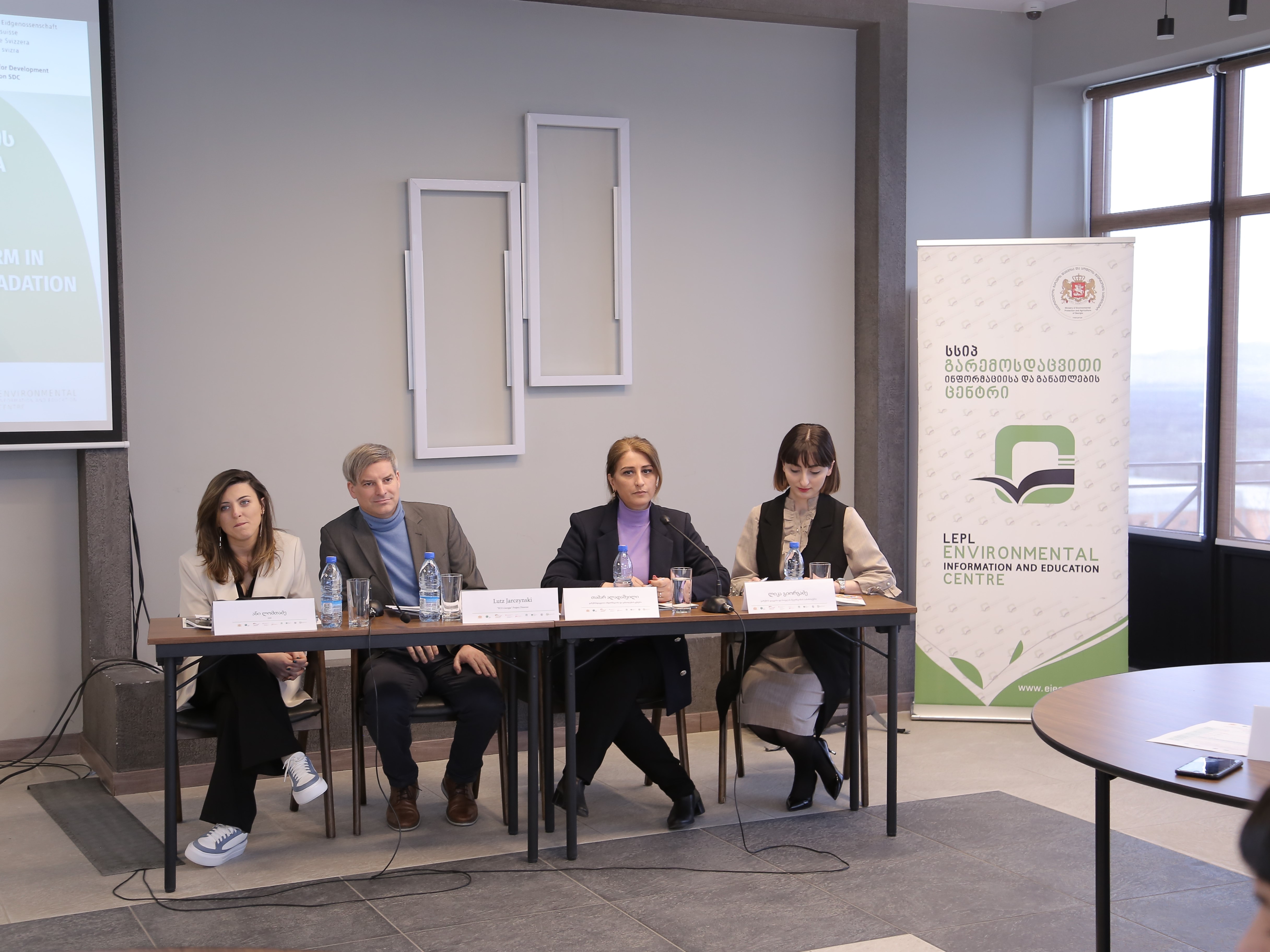 „საქართველოში ტყის სექტორის რეფორმის განხორციელების მხარდაჭერა - ECO.Georgia“ პროექტის ფარგლებში, გარემოსდაცვითი ინფორამციისა და განათლების ცენტრის ორგანიზებით მედიასაშუალებების წარმომადგენლების დაინტერესებისა და ტყის სექტორში არსებული პროგრესის გაცნობის მიზნით, საინფორმაციო შეხვედრა გაიმართა. შეხვედრას ადგილობრივი და ეროვნული მედიასაშუალებების წარმომადგენელები ესწრებოდნენ.