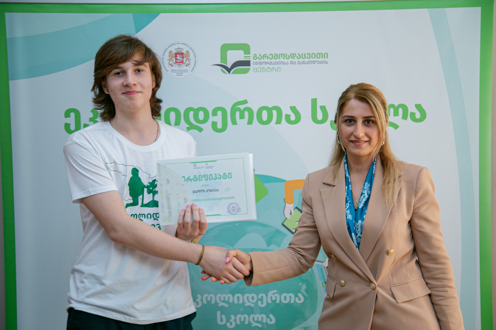 „ეკოლიდერთა სკოლის“ სასწავლო კურსის შემაჯამებელ შეხვედრაზე, გარემოს დაცვისა და სოფლის მეურნეობის მინისტრის მოადგილემ, სოლომონ პავლიაშვილმა ახალგაზრდებს სერტიფიკატები გადასცა.