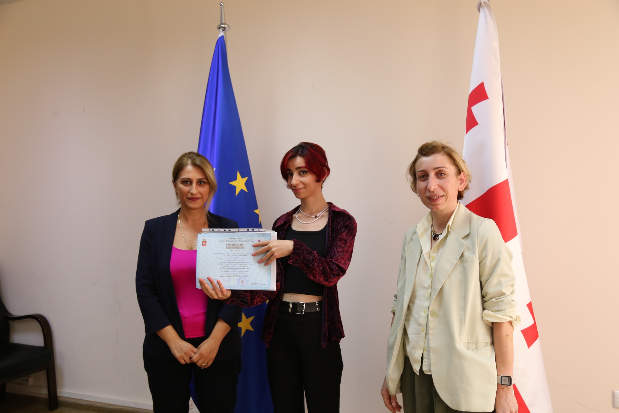 პროფესიული გადამზადების პროგრამა „ტყის ინვენტარიზაცია და ტაქსაცია" 12-მა ახალგაზრდამ წარმატებით დაასრულა. კურსდამთავრებულებს სერტიფიკატები გარემოსდაცვითი ინფორმაციისა და განათლების ცენტრის დირექტორმა თამარ ალადაშვილმა და ეროვნული სატყეო სააგენტოს უფროსის მოადგილემ ნათია იორდანიშვილმა გადასცეს.