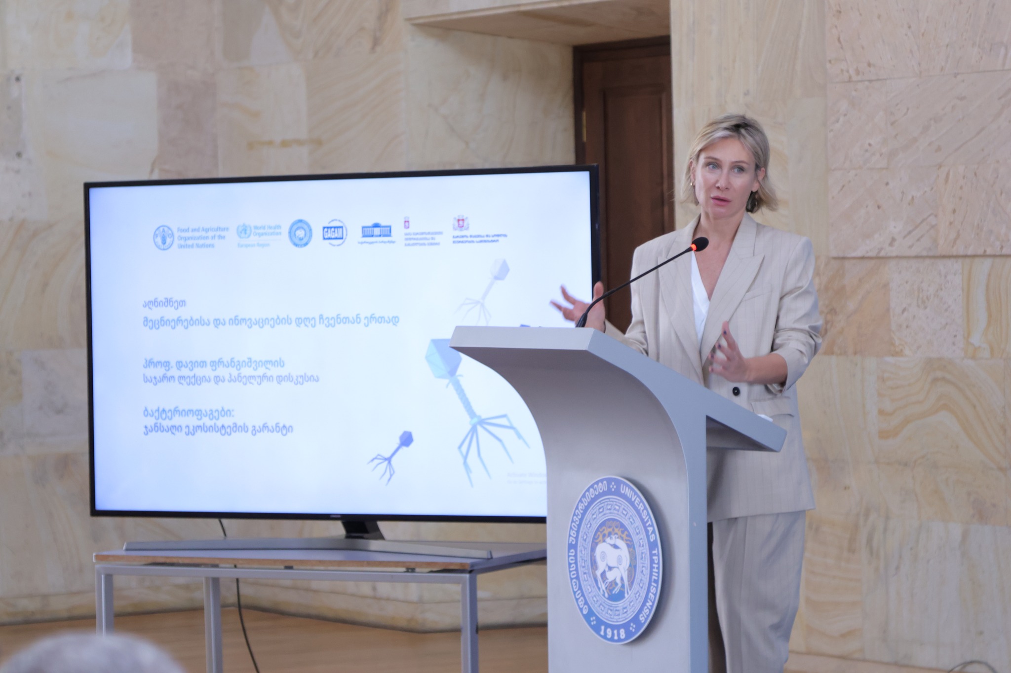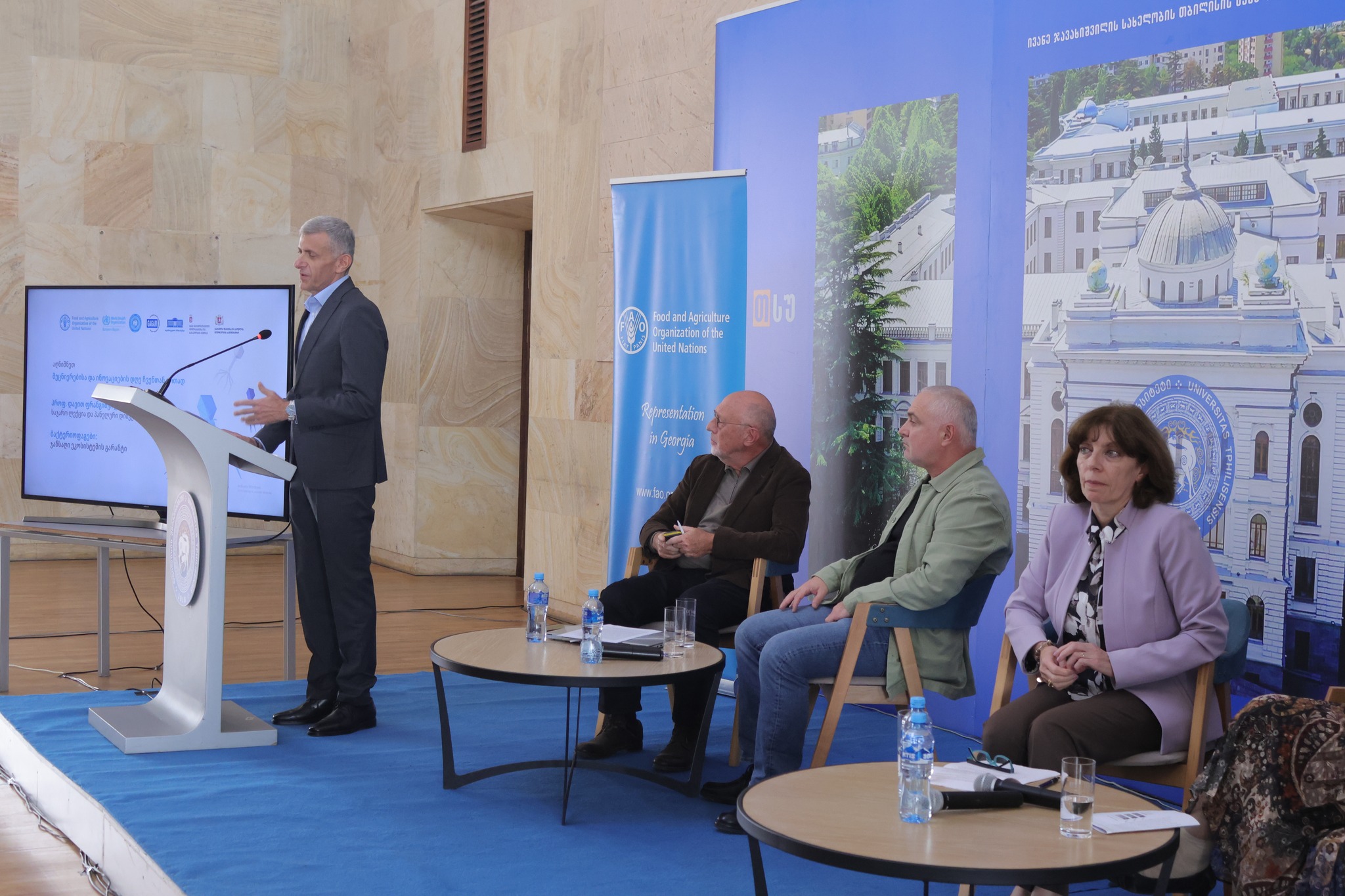 საჯარო ლექცია გაეროს სურსათისა და სოფლის მეურნეობის ორგანიზაციის (FAO) ორგანიზებითა და გარემოსდაცვითი ინფორმაციისა და განათლების ცენტრის, ივანე ჯავახიშვილის სახელობის თბილისის სახელმწიფო უნივერსიტეტის, ჯანმრთელობის მსოფლიო ორგანიზაციისა (WHO) და საქართველოს ზოგადი და გამოყენებითი მიკრობიოლოგიის ასოციაციის პარტნიორობით გაიმართა.