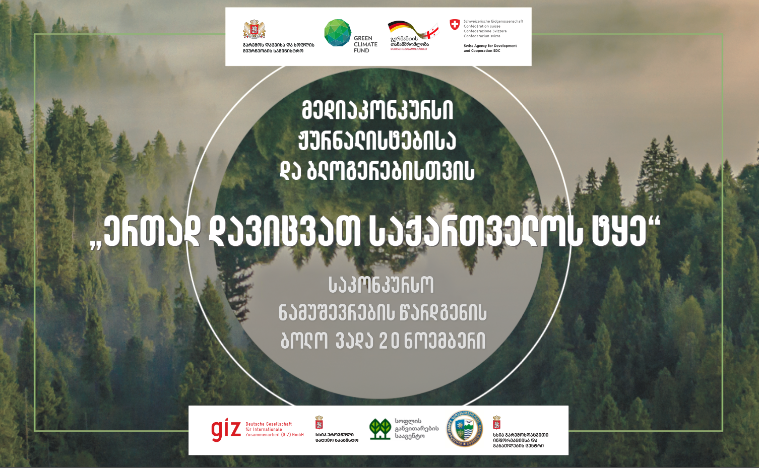 გარემოსდაცვითი ინფორმაციისა და განათლების ცენტრი აცხადებს მედიაკონკურსს ჟურნალისტებისა და ბლოგერებისთვის - „ერთად დავიცვათ საქართველოს ტყე“.