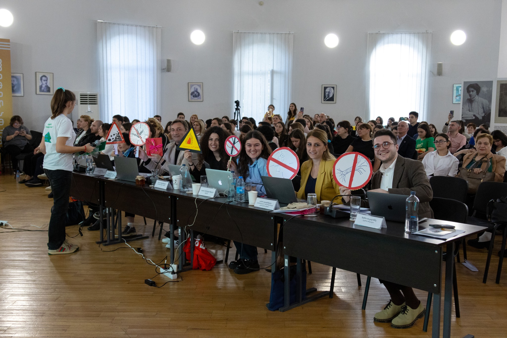 გარემოს დაცვისა და სოფლის მეურნეობის სამინისტროს გარემოსდაცვითი ინფორმაციისა და განათლების ცენტრის დირექტორმა თამარ ალადაშვილმა ნიკო კეცხოველის სასკოლო პრემიის ფინალური შეხვედრა მისასალმებელი სიტყვით გახსნა.