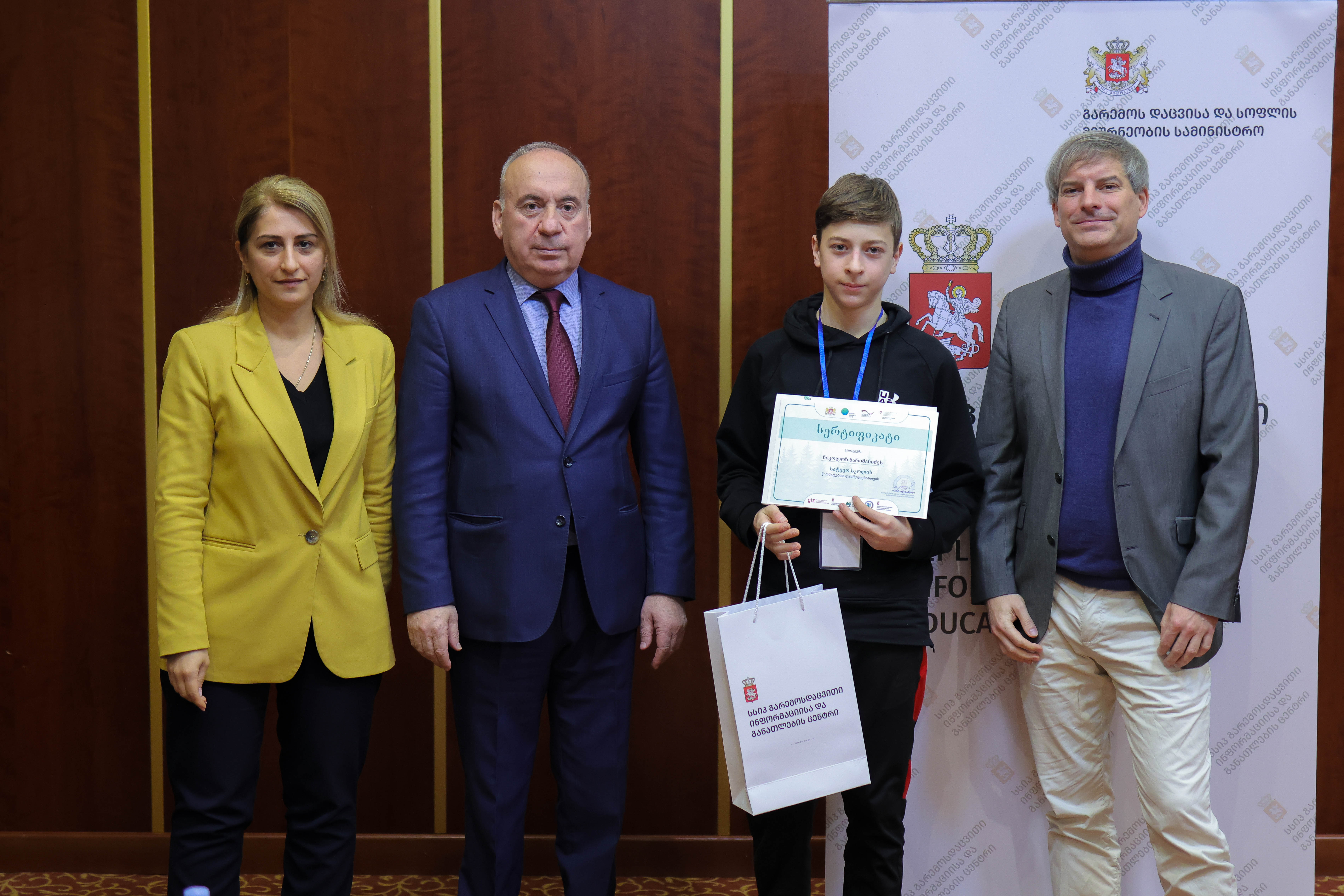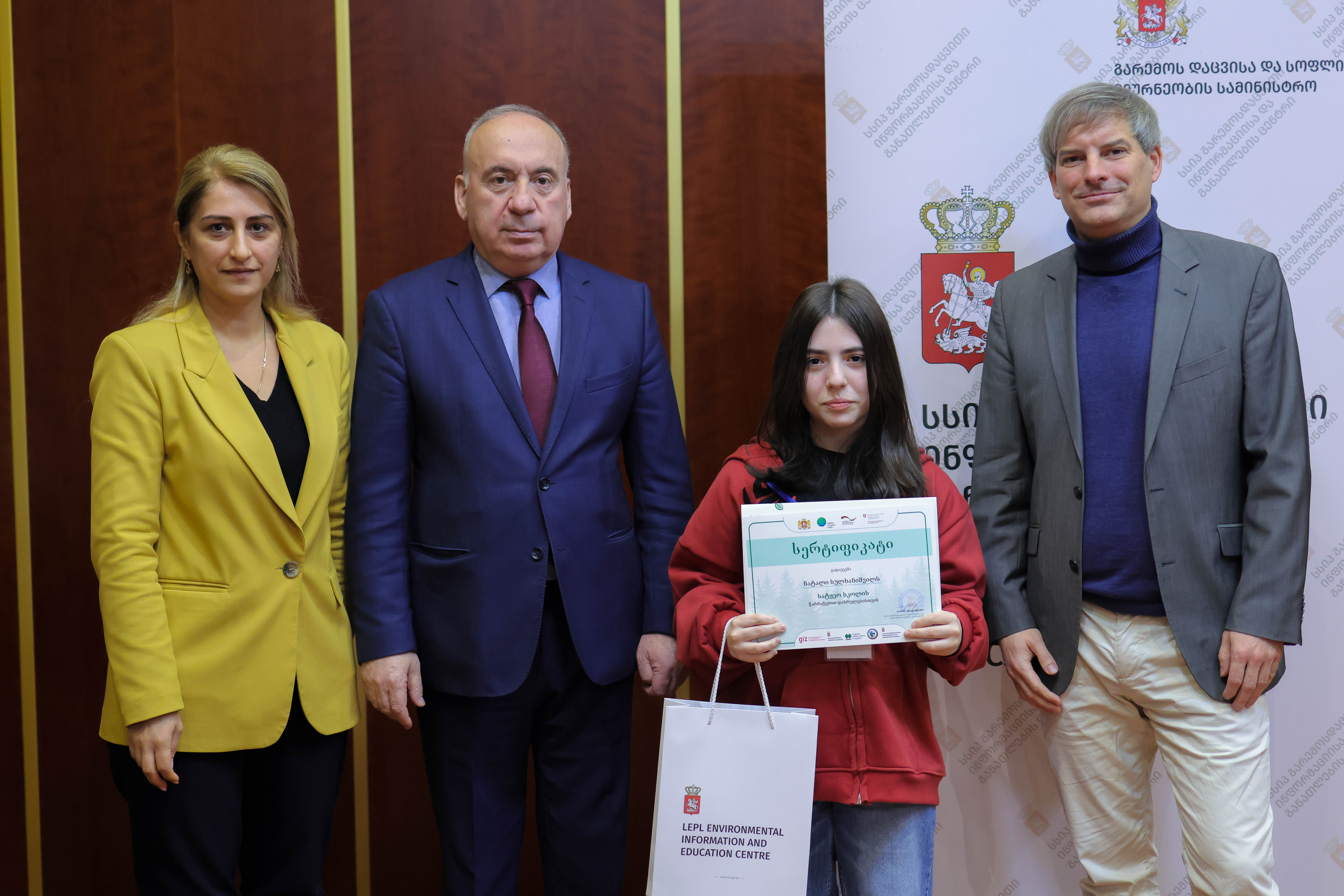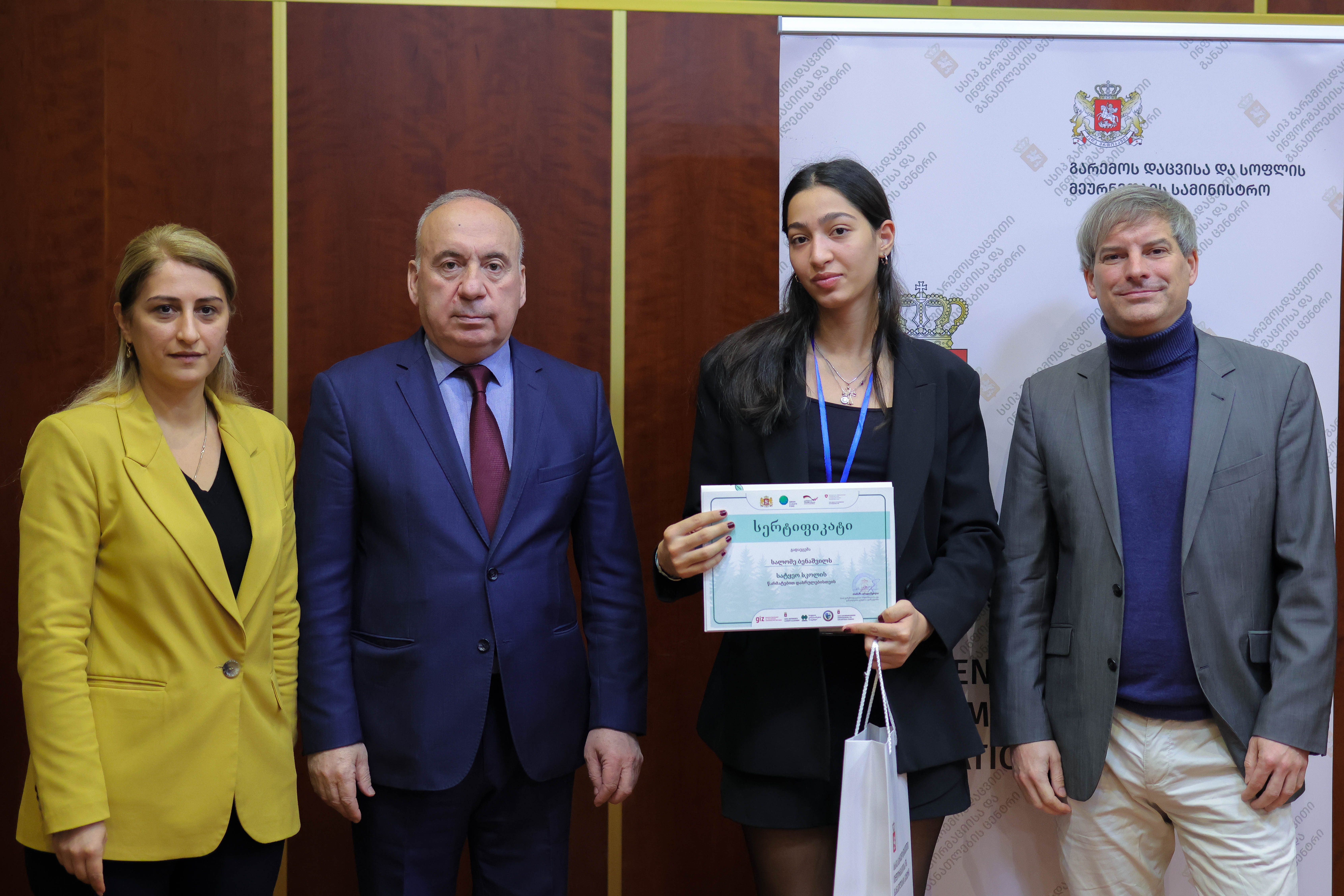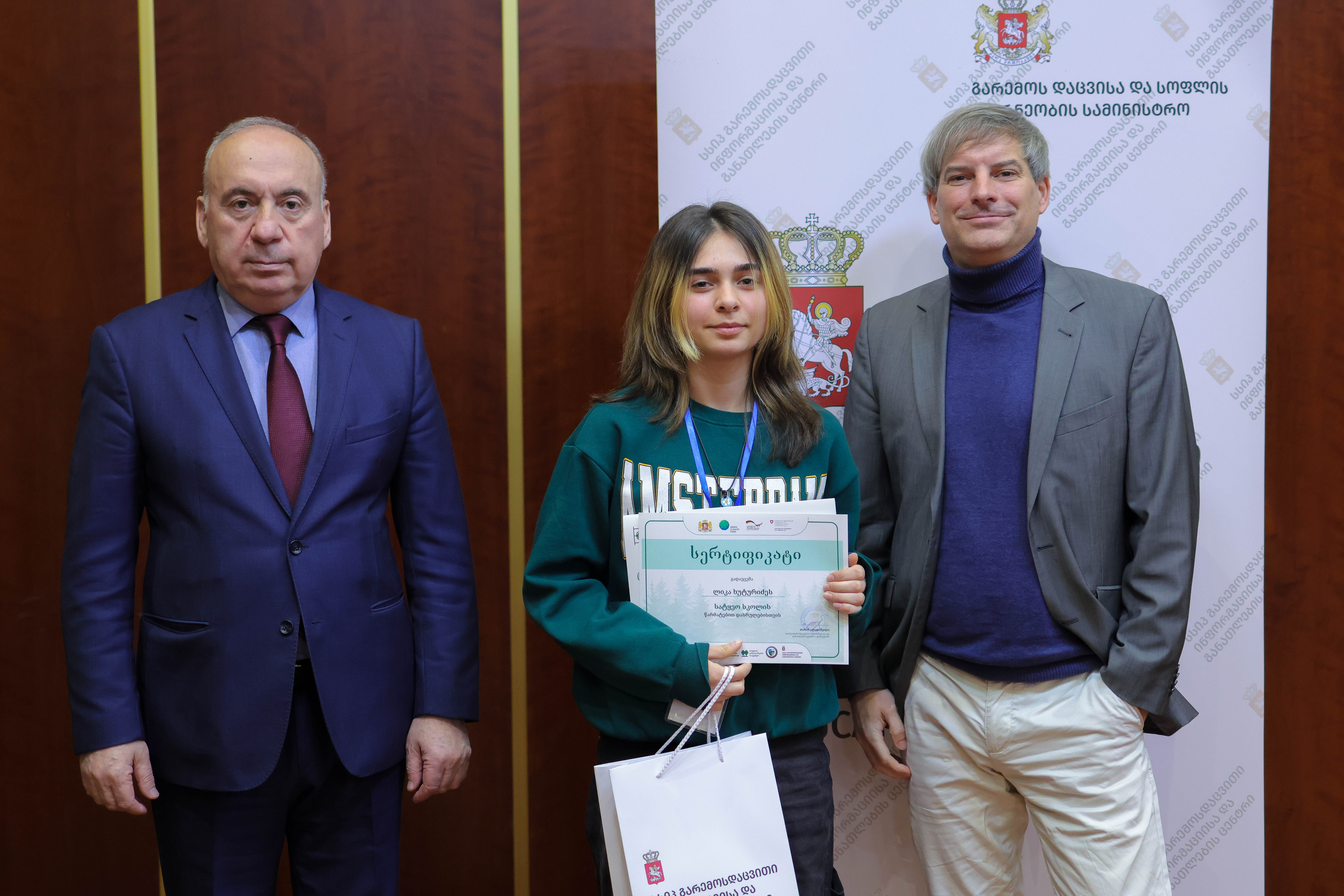 „სატყეო სკოლის“ კურსდამთავრებულებს სერტიფიკატები გარემოს დაცვისა და სოფლის მეურნეობის მინისტრის მოადგილე სოლომონ პავლიაშვილმა და პროექტის „ECO.Georgia” დირექტორმა ლუთს იარჩინსკიმ გადასცეს.