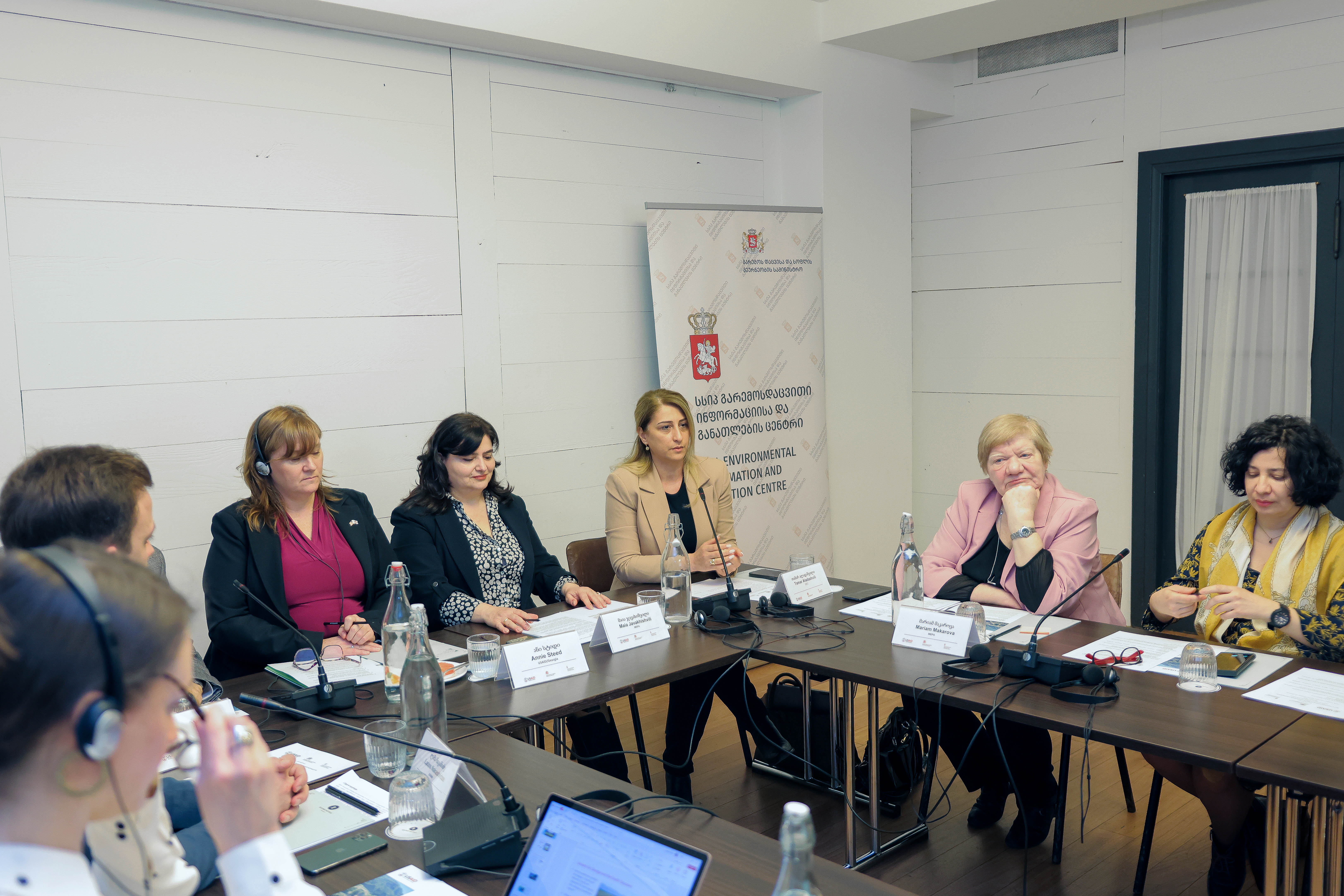შეხვედრაზე საინფორმაციო შინაარსის მოხსენებებით წარდგნენ გარემოს დაცვისა და სოფლის მეურნეობის სამინისტროს გარემოსა და კლიმატის ცვლილების დეპარტამენტის ხელმძღვანელის მოადგილე მაია ჯავახიშვილი, გარემოსდაცვითი ინფორმაციისა და განათლების ცენტრის დირექტორი თამარ ალადაშვილი და USAID სამხრეთ კავკასიის რეგიონული წყლის მართვის პროგრამის (SCRWM) ხელმძღვანელი ერიკ ვიალა.