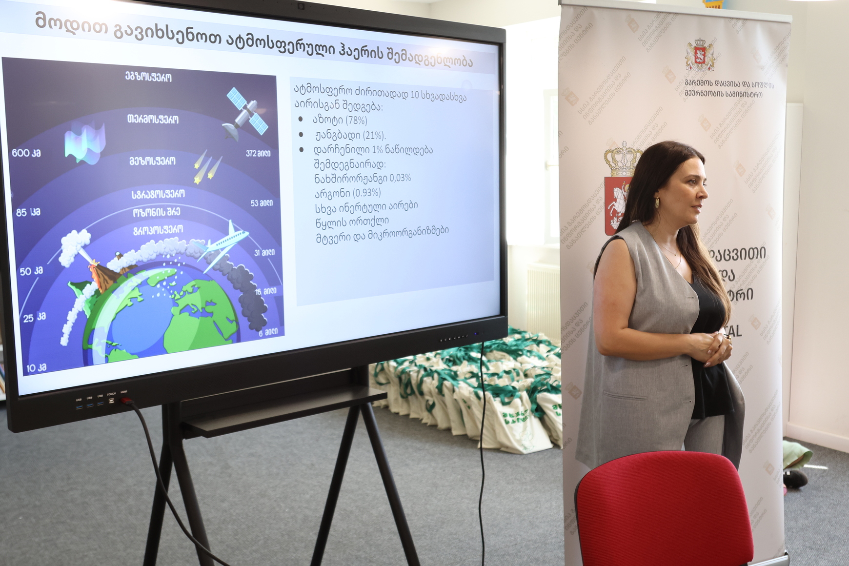 ლექცია-სემინარზე გარემოსდაცვითი ინფორმაციისა და განათლების ცენტრის ტრენერმა თეონა შუბლაძემ ვრცლად ისაუბრა ოზონის შრის გათხელების პრობლემის არსსა და ოზონის შრის დაცვის მექანიზმებზე, მსოფლიოსა და საქართველოში ოზონის შრის დასაცავად საჭირო ქმედებებზე.