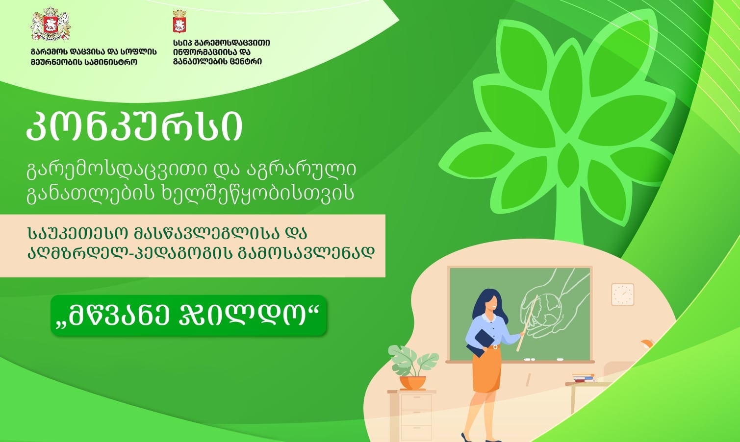 კონკურსი „მწვანე ჯილდო” 2024-2025 სასწავლო წლის საუკეთესო აღმზრდელ-პედაგოგისა და მასწავლებლის გამოსავლენად ტარდება.