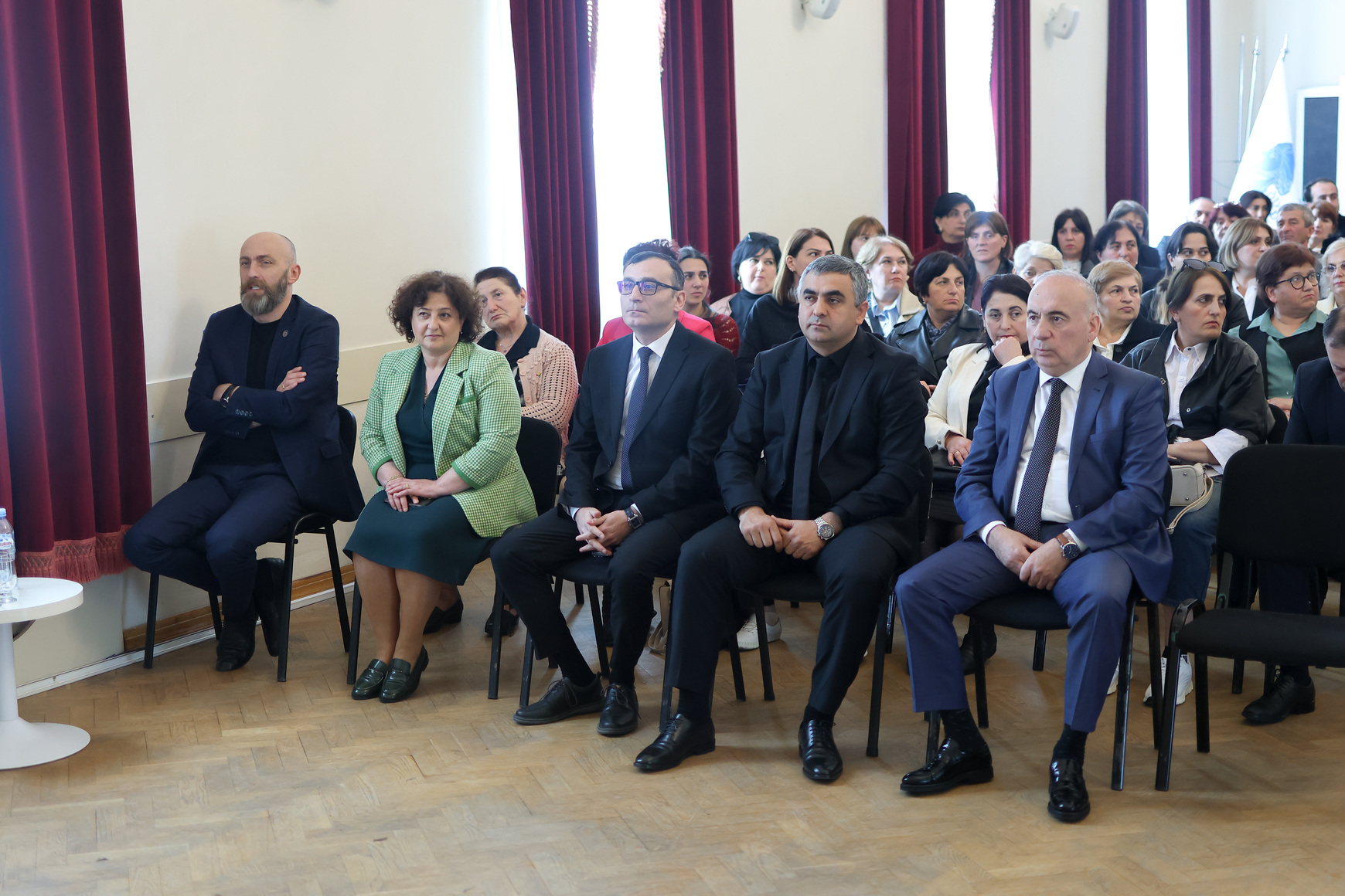 ბათუმში მასწავლებლებთან შეხვედრას აჭარის ავტონომიური რესპუბლიკის განათლების და სპორტის მინისტრი მაია ხაჯიშვილი, სოფლის მეურნეობის მინისტრი ზაზა შავაძე, აჭარის ავტონომიური რესპუბლიკის უმაღლესი საბჭოს განათლების მეცნიერების, კულტურისა და სპორტის საკითხთა კომიტეტის თავჯდომარე დავით ბაციკაძე, შოთა რუსთაველის სახელობის ბათუმის სახელმწიფო უნივერსიტეტის რექტორი ტიტე აროშიძე ესწრებოდნენ.