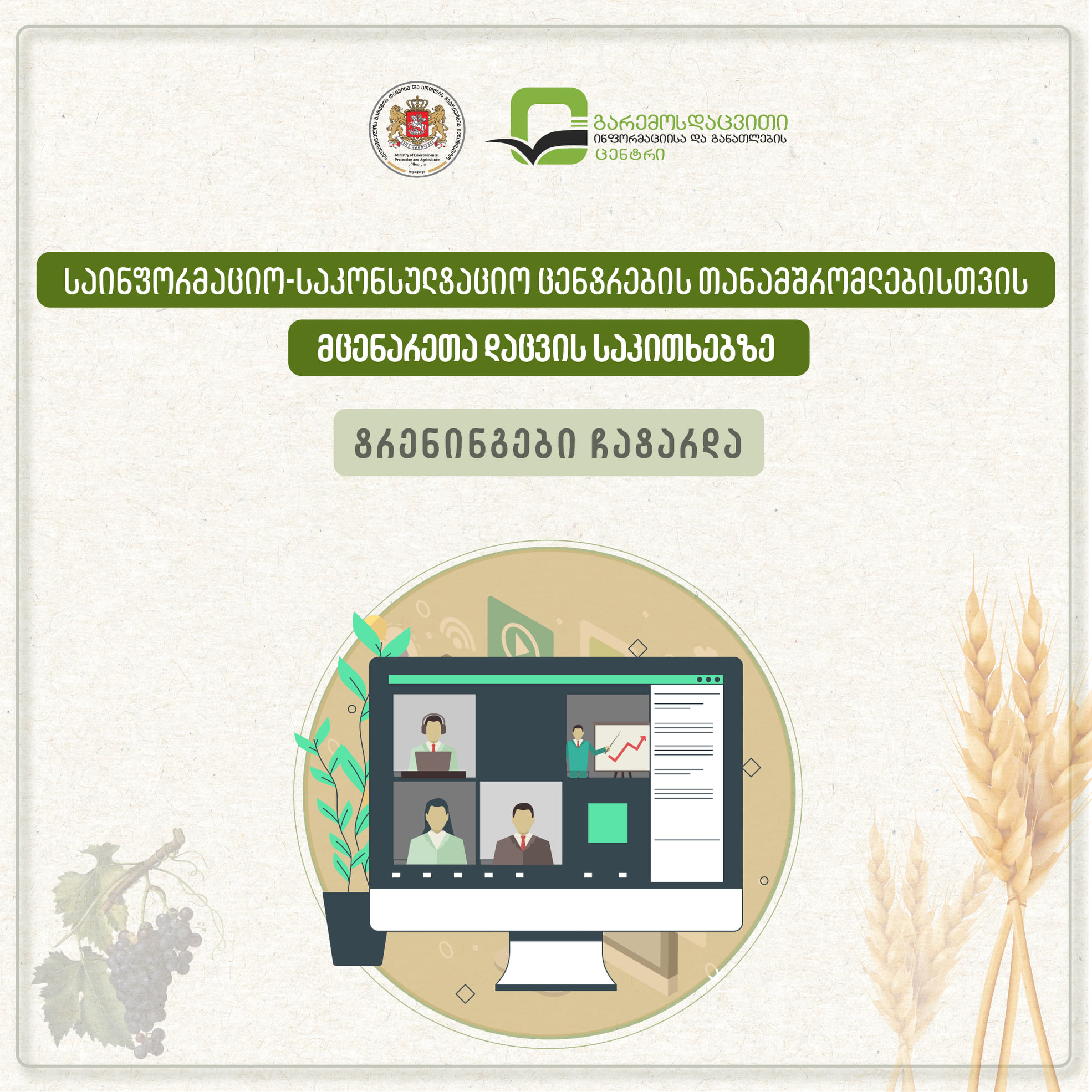 გარემოს დაცვისა და სოფლის მეურნეობის სამინისტროს გარემოსდაცვითი ინფორმაციისა და განათლების ცენტრის ორგანიზებით, სოფლის განვითარების სააგენტოს რეგიონებთან ურთიერთობის დეპარტამენტის საინფორმაციო-საკონსულტაციო ცენტრების თანამშრომლებისთვის, მცენარეთა დაცვის საკითხებზე ტრენინგები ჩატარდა. ტრენინგები მიზნად ისახავს სააგენტოს იმ თანაშრომლების ცოდნის გაღრმავებას, რომლებიც ფერმერებს აგროწარმოების მიმართულებით უწევენ კონსულტაციებს. განათლების ცენტრის ორგანიზებით გამართულ ტერნინგებს, ქვეყნის 9 რეგიონიდან, 160 მონაწილე დაესწრო.
