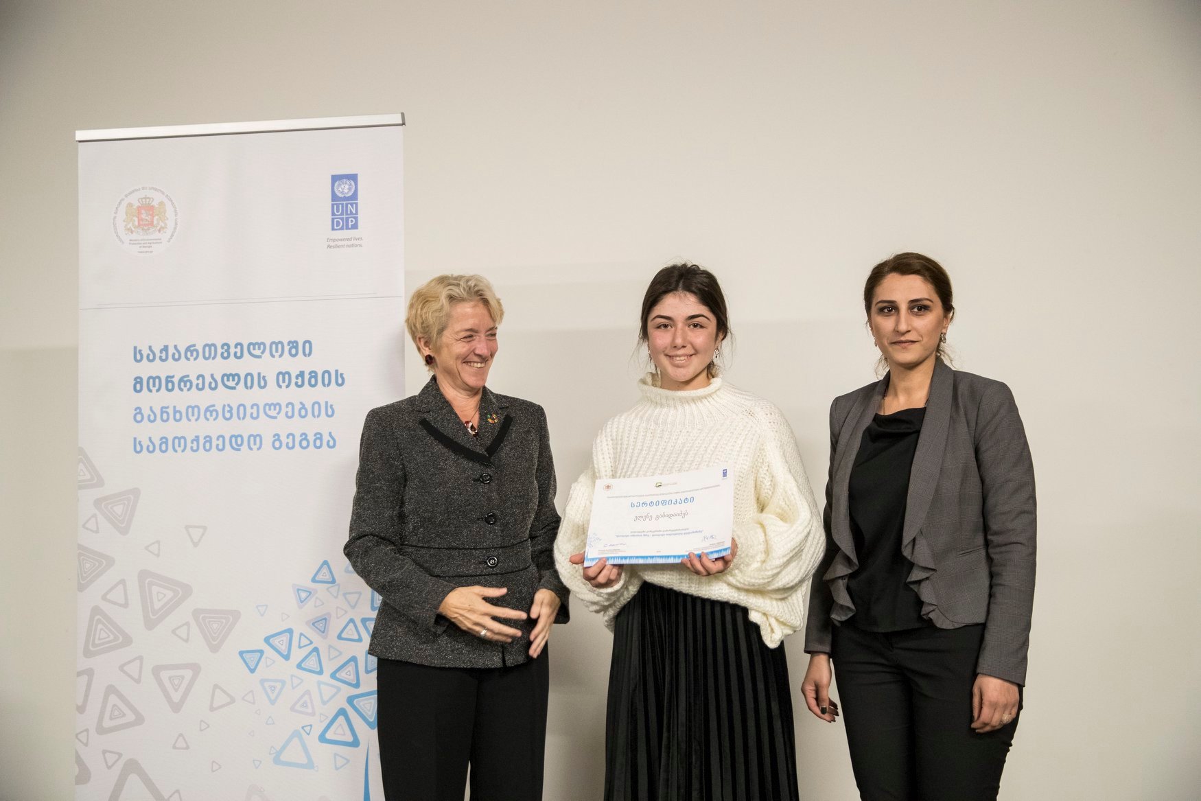 კონკურსში მონაწილეობა ოცდათხუთმეტმა სკოლის მოსწავლემ მიიღო და შერჩეულ ოთხ მონაწილეს ახალგორიდან, ქვემო ალვანიდან, რუსთავიდან და თბილისიდან გადაეცათ ჯილდოები ოზონის შრის შესახებ საუკეთესო ესეებისა და “ატმოსფერული ჰაერის დაცვის” შესახებ ვიდეომიმართვების მომზადებისათვის.