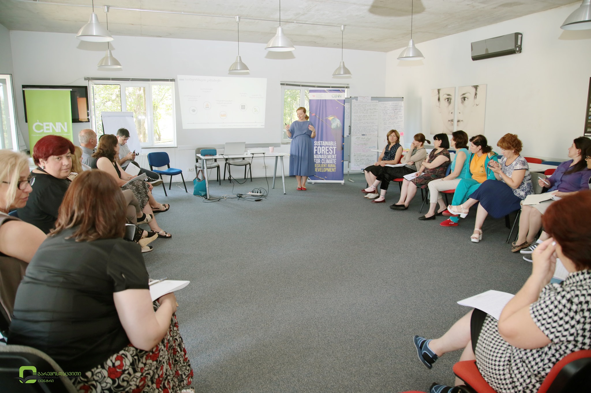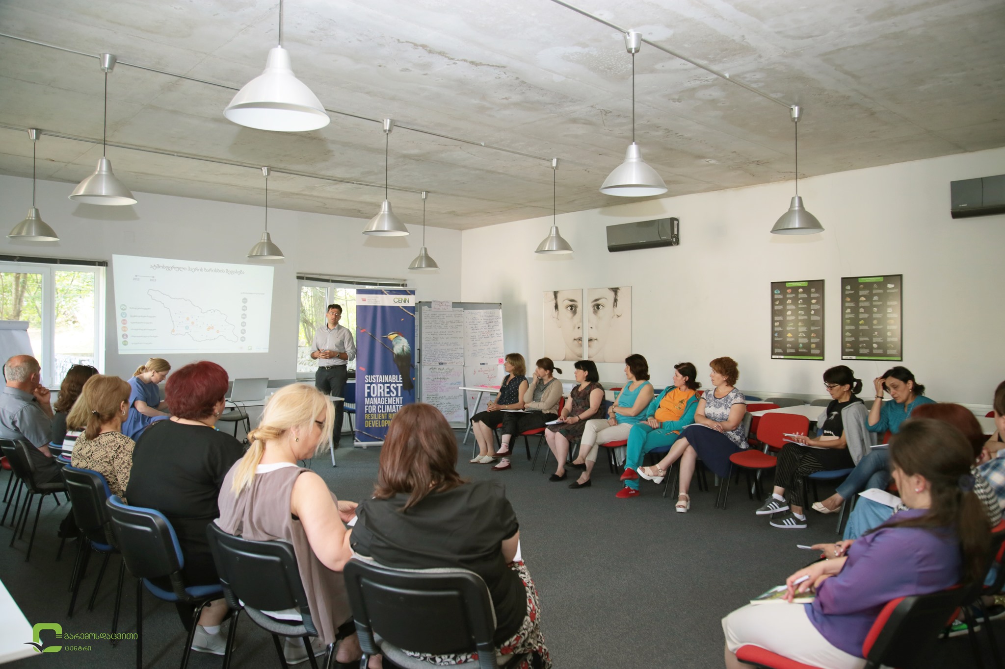 ცენტრის დირექტორის მოადგილემ ეკატერინე ბენდელიანმა მასწავლებლებს გარემოსდაცვითი ინფორმაციისა და განათლების ცენტრის საქმიანობის, მიმდინარე და დაგეგმილი პროექტების შესახებ პრეზენტაცია წარუდგინა. განსაკუთრებით ყურადღება გამახვილდა იმ აქტივობებზე, რომელშიც მასწავლებლებს სამომავლოდ შეეძლებათ ჩართვა და ცენტრთან თანამშრომლობა.
