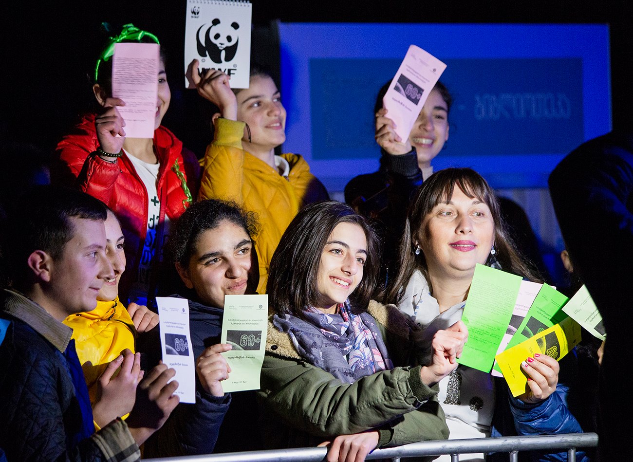 ღონისძიების მონაწილეებმა ანთებული სანთლებისაგან შექმნეს დედამიწის საათის სიმბოლო 60+, რომელიც გვაფრთხილებს, რომ პლანეტაზე ზრუნვა მხოლოდ ერთი საათით არ უნდა შემოიფარგლებოდეს. საღამო მუსიკალურად მომღერალმა ოთო ნემსაძემ და ჯგუფებმა MokuMoku და Killages გააფორმა. ასევე, გაიმართა დრამერების შოუ.