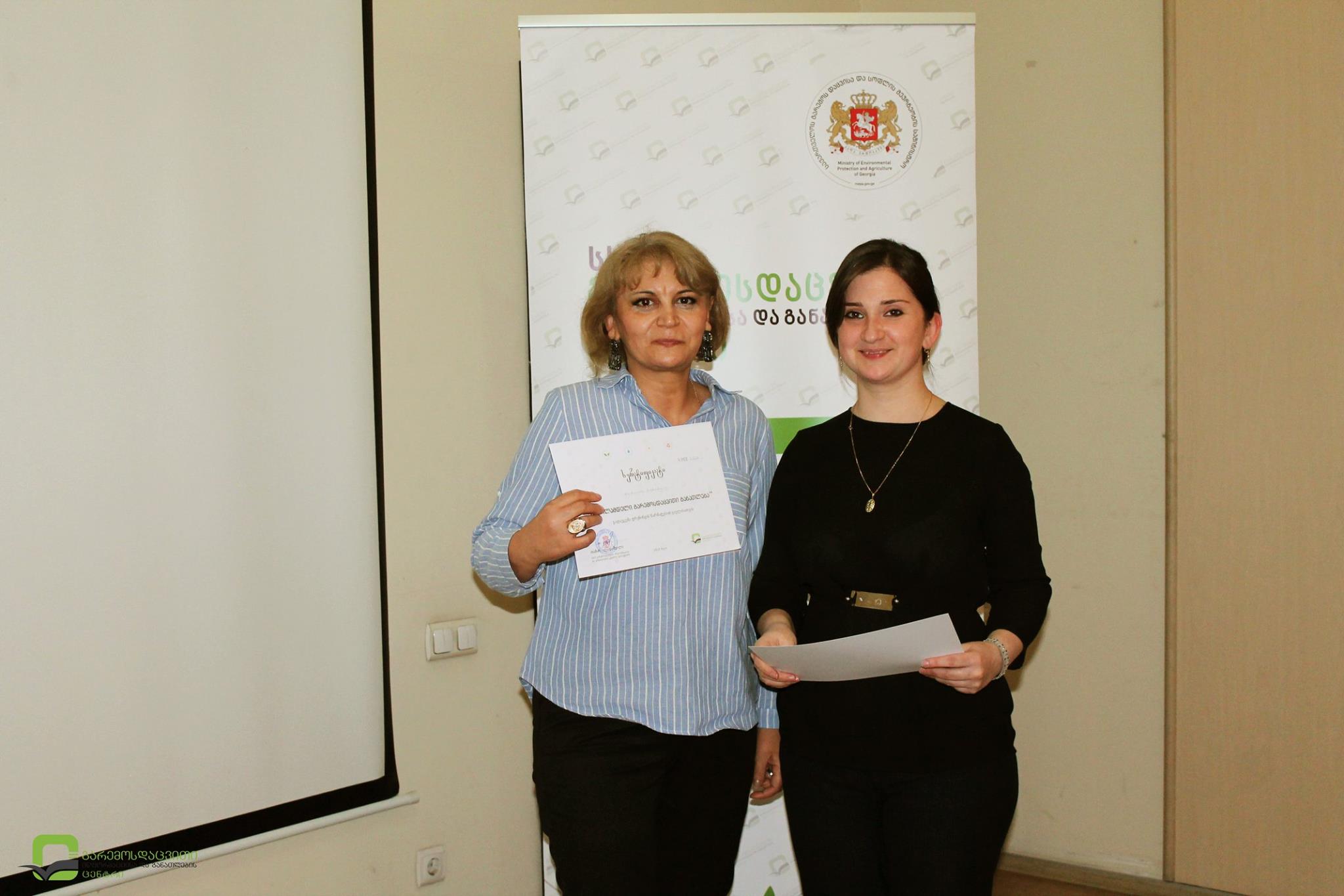 ტრენინგს გარემოსდაცვითი ინფორმაციისა და განათლების ცენტრის დირექტორის მოადგილე ეკატერინე ბენდელიანი და ქალაქ ბოლნისის მერის მოადგილე ვალენტინა ნავერიანი დაესწრნენ.