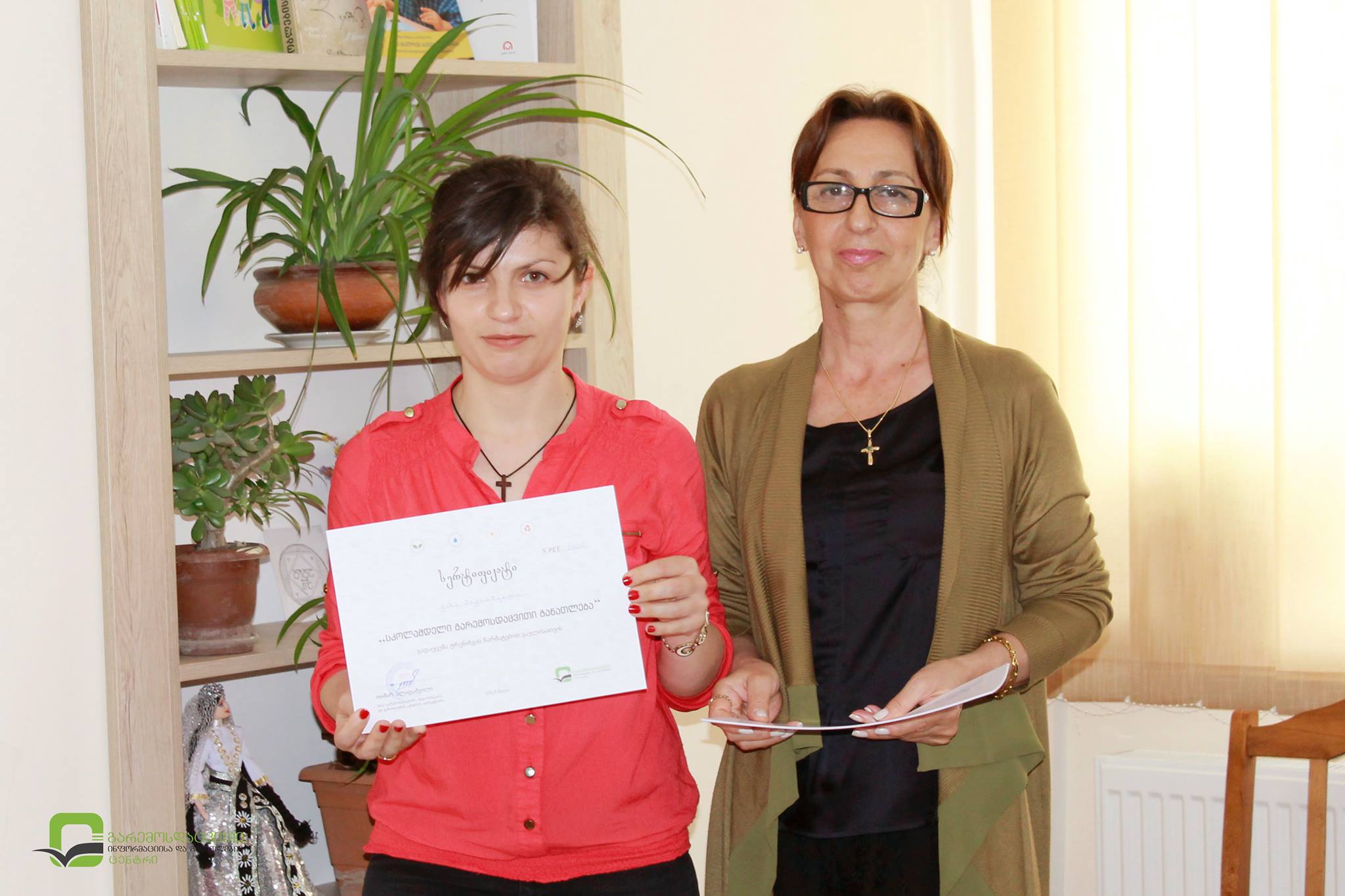 ტრენინგის მონაწილე აღმზრდელებსა და მეთოდისტებს დაურიგდათ სასკოლო მზაობის პროგრამის ფარგლებში, ცენტრის მიერ შემუშავებული სახელმძღვანელო აღმზრდელთათვის - ,,სკოლამდელი გარემოსდაცვითი განათლება“ და გადაეცათ სერტიფიკატები.