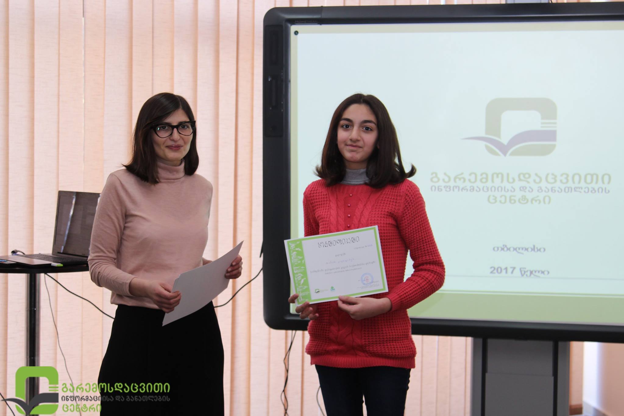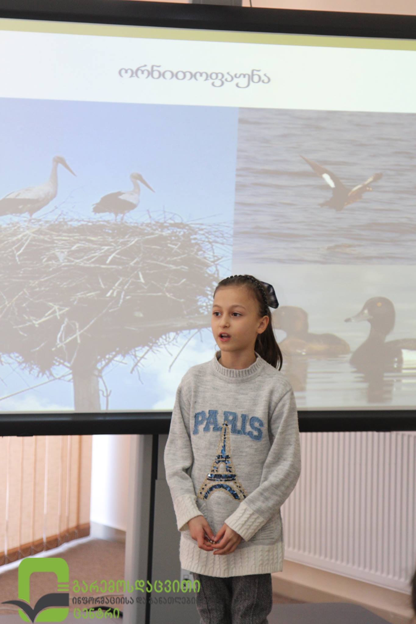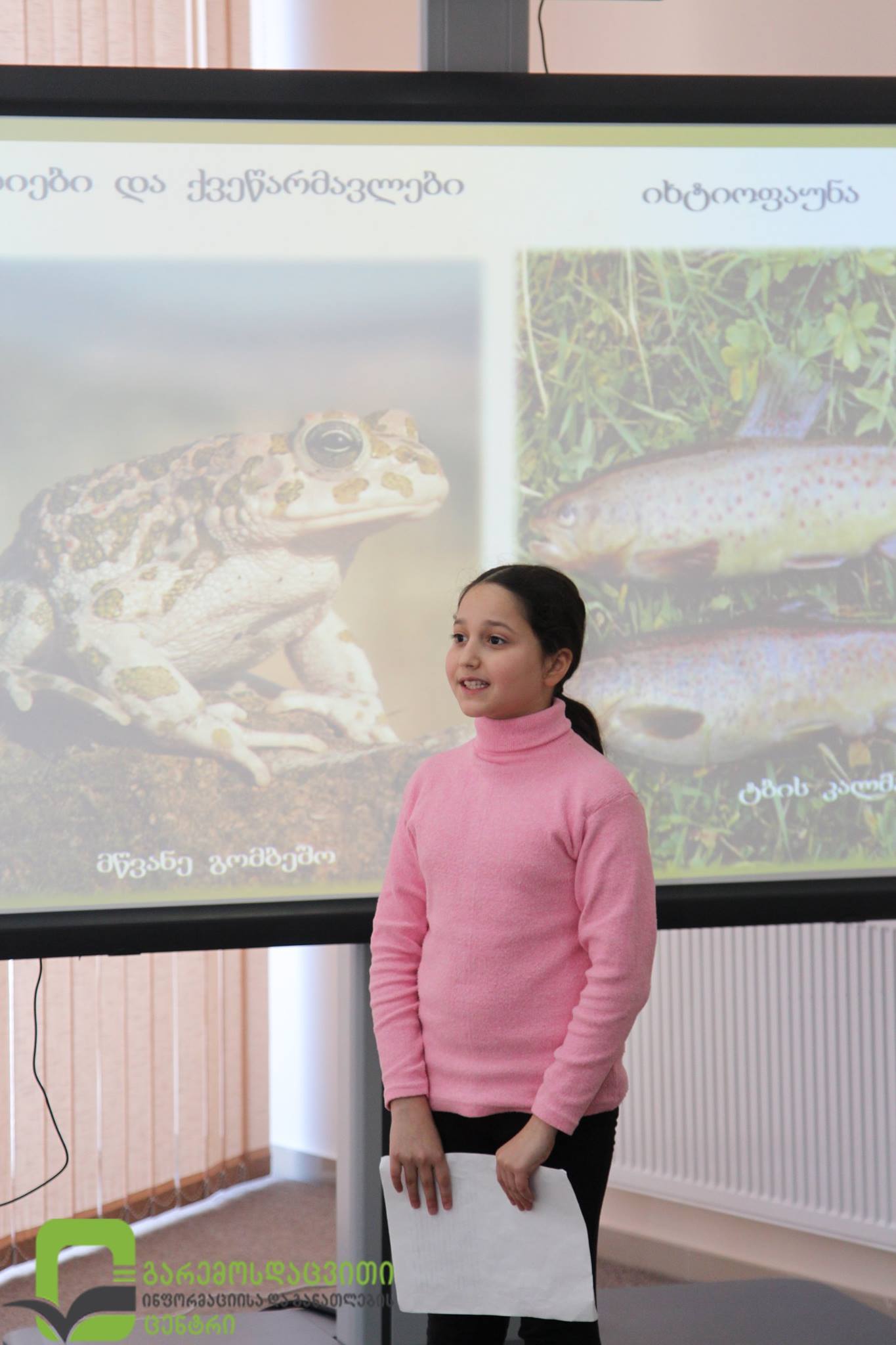 გარემოსდაცვითი ინფორმაციისა და განათლების ცენტრის დირექტორმა, ია პაპიაშვილმა ღონისძიების მონაწილეებს სერტიფიკატები გადასცა. შეხვედრის ბოლოს კი ბავშვებმა დედამიწას თავიანთი დაპირებებიც აღუთქვეს.