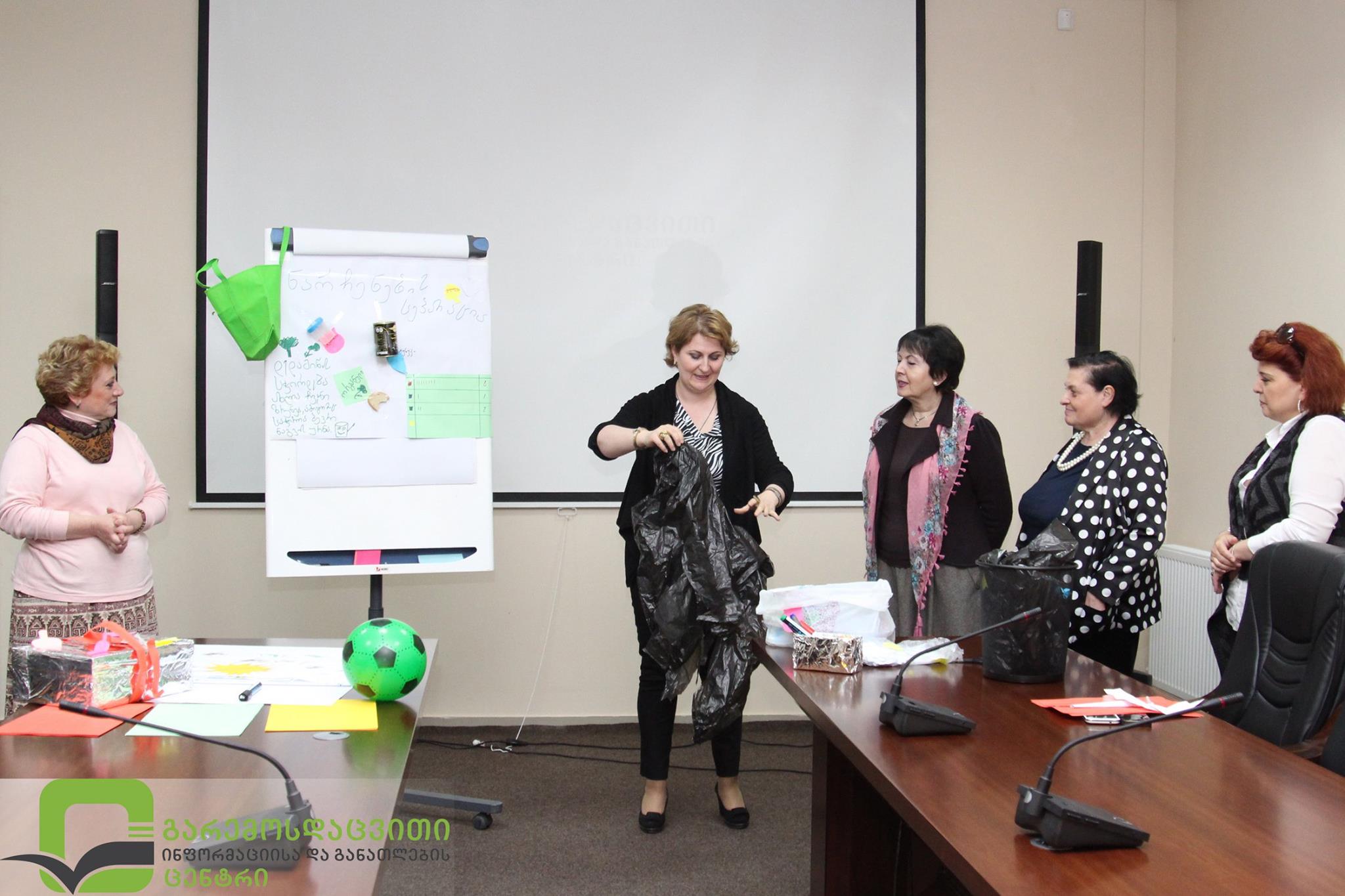 ქალაქ თბილისის მერიასთან თანამშრომლობით შერჩეულ 16 საპილოტე ბაგა-ბაღების აღმზრდელებს ტრენინგი ჩაუტარდათ, თუ როგორ მოხდეს გარემოსდაცვითი კომპონენტების დანერგვა სკოლამდელ განათლებაში. სექტემბრიდან კი ყველა ბაგა-ბაღს ექნება დამხმარე სახელმძღვანელოს გამოყენების საშუალება.