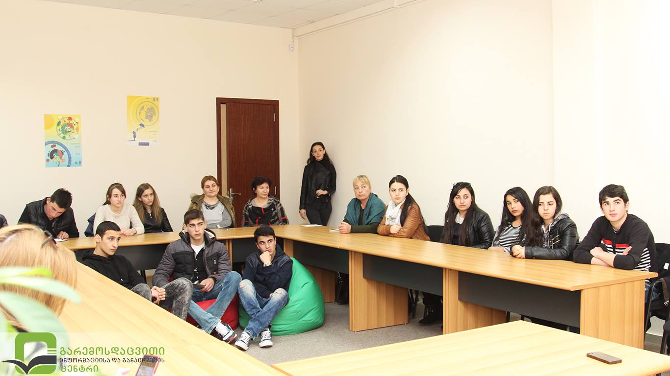გარემოსდაცვითი ინფორმაციისა და განათლების ცენტრი აგრძელებს შეხვედრებს სკოლის მოსწავლეებთან. ჩვენს ცენტრს თეთრიწყაროსა და ბოლნისის სკოლის 20 მოსწავლე ესტუმრა. „მომავლის თაობის“ პროგრამის წარმომადგენლებს შეხვედრა ბიომრავალფეროვნებისა და დაცული ტერიტორიების შესახებ ჩვენი ცენტრის განათლების პროექტების სამსახურის უფროსმა ნატა სულთანიშვილმა ჩაუტარა.