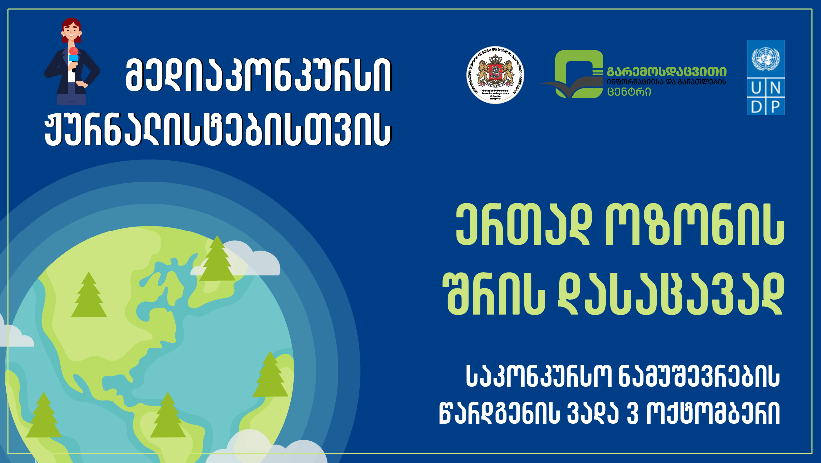 გარემოს დაცვისა და სოფლის მეურნეობის სამინისტროს გარემოსდაცვითი ინფორმაციის და განათლების ცენტრი და გაეროს განვითარების პროგრამა (UNDP) აცხადებს მედიაკონკურსს ჟურნალისტებისთვის - „ერთად ოზონის შრის დასაცავად“.