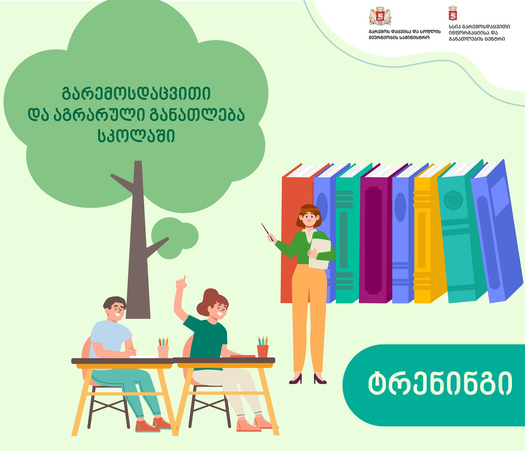 საქართველოს გარემოს დაცვისა და სოფლის მეურნეობის სამინისტროს სსიპ გარემოსდაცვითი ინფორმაციისა და განათლების ცენტრი ახორციელებს ზოგადი განათლების დაწყებითი (I-VI კლასი) საფეხურის, ასევე გეოგრაფიისა და სამოქალაქო განათლების მასწავლებლების ტრენინგს - ,,გარემოსდაცვითი და აგრარული განათლება სკოლაში”.
