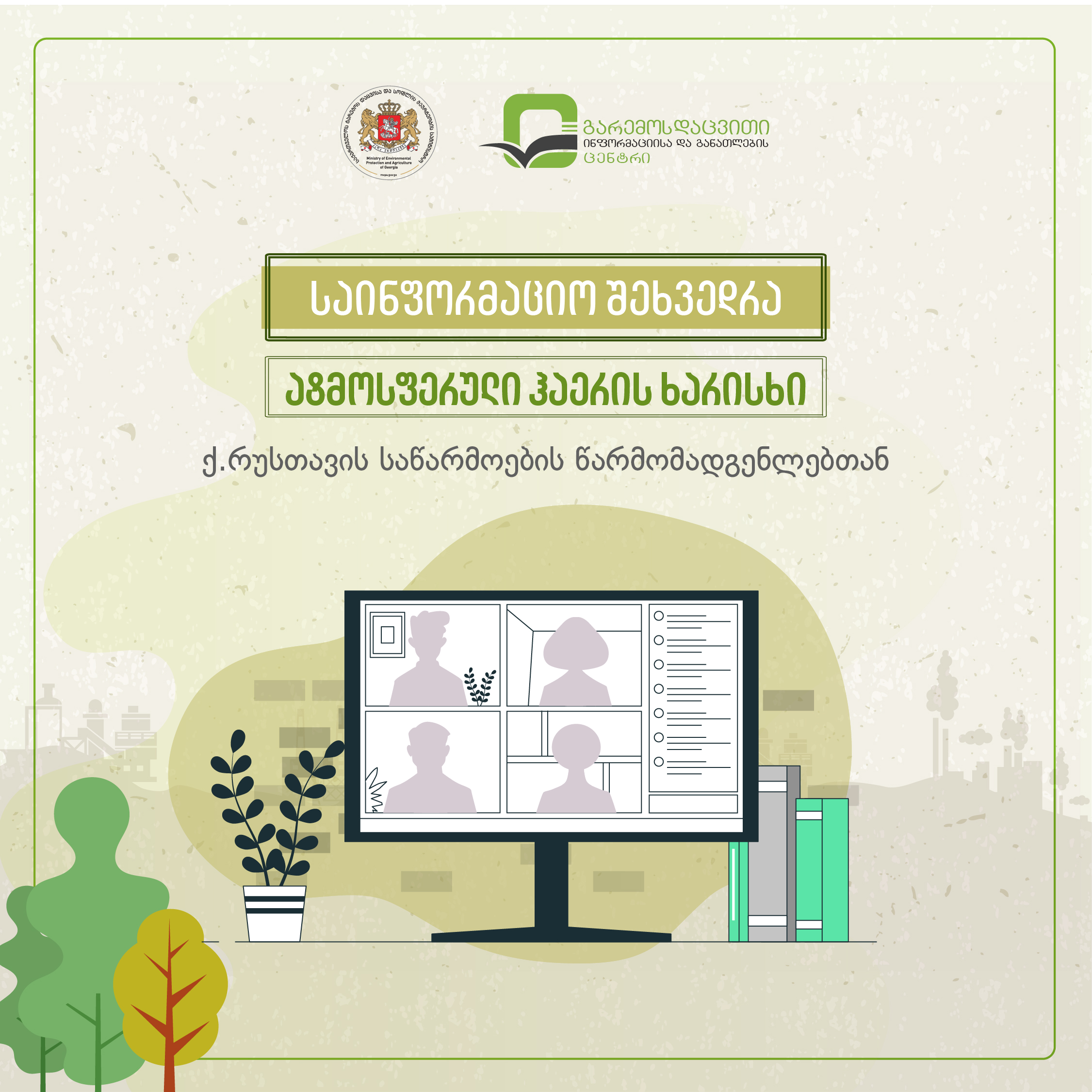 გარემოს დაცვისა და სოფლის მეურნეობის სამინისტროს გარემოსდაცვითი ინფორმაციისა და განათლების ცენტრმა, ქ.რუსთავში არსებული საწარმოების წარმომადგენლებთან (ონლაინ) საინფორმაციო შეხვედრა გამართა.