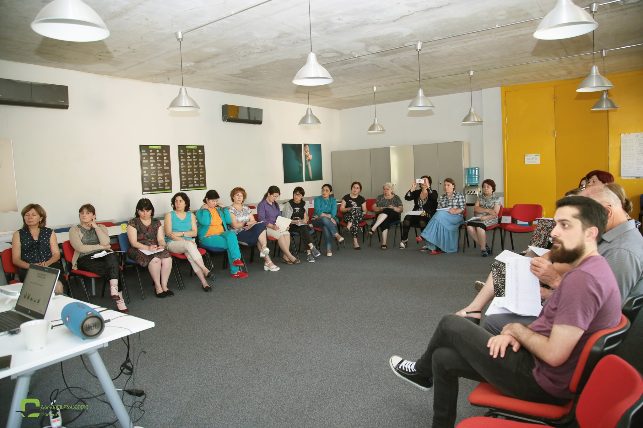 ცენტრის დირექტორის მოადგილემ ეკატერინე ბენდელიანმა მასწავლებლებს გარემოსდაცვითი ინფორმაციისა და განათლების ცენტრის საქმიანობის, მიმდინარე და დაგეგმილი პროექტების შესახებ პრეზენტაცია წარუდგინა. განსაკუთრებით ყურადღება გამახვილდა იმ აქტივობებზე, რომელშიც მასწავლებლებს სამომავლოდ შეეძლებათ ჩართვა და ცენტრთან თანამშრომლობა.